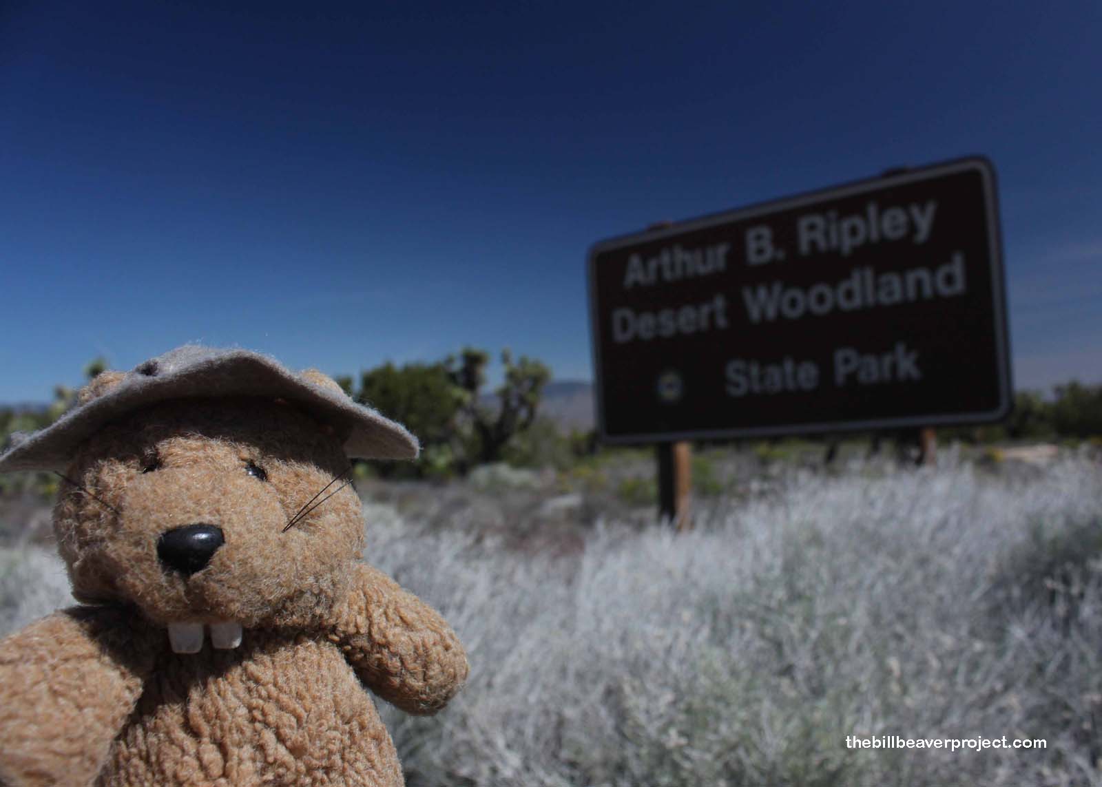 The park’s entrance was not so obvious: just a gate and a sign to the side of the road, all fenced in. Why the fence, you ask? Well, this park is all that remains of how Antelope Valley used to look before farmers brought in their sheep to eat the place up. That wasn’t very nice at all! So Mr. Ripley, who was also a farmer, decided it was time to preserve some of these spectacular trees for folks of the future to enjoy. Thus was born the park, small but stunning, and, I might add, home to the beavertail cactus (Opuntia basilaris)!