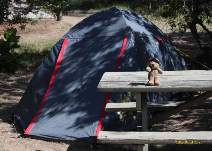 It was getting late in the afternoon, so I decided it would be wise to pitch the tent. Hermit’s Gulch Campground was the closest location to reach on foot, about a mile inland, but even being near the road, on this island, it felt pretty remote! It took me a while to set up the tent. The ground was kind of hard and I’d forgotten a hammer, but finally, after great struggle, there was triumph!