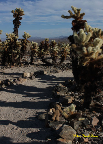 With daylight drawing to a close, there was still one more place I wanted to see: the cholla garden! To get there, I had to transcend deserts. Joshua Tree is situated on the frontier between the high Mojave Desert, home of the Joshua Tree, and the low Colorado Desert, home of the fan palm. I didn’t get to see any fan palm oases on this trip, but nonetheless, traveling through the transition zone was fascinating! The Joshua Trees stopped abruptly, the creosote mediated, and the cholla took over! The actual cholla garden was a remarkable gathering of the spiny cacti, which, backlit by the sun, appeared deceptively fuzzy. It was a good thing I stayed away, though, because these were jumping cholla, and not the kind that can do the Mexican hat dance!