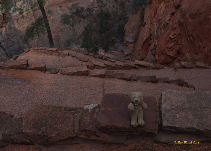 I think a lot of people put too much importance on success. It shouldn’t be shameful to turn back for one’s own safety! I mean, you can’t really celebrate your victory when a condor is eating your insides. Sure, he’ll enjoy it, but condors are macabre creatures anyway. The walls of Angel’s Landing are steep, and the trail can be just a few feet wide. Then when you add ice, you’re just asking for trouble! I had to pause and weigh my options.