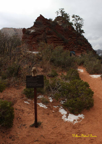 Angel’s Landing received its name in 1916 when Frederick Fisher exclaimed to his three friends that “only an angel could land on it.” Without a doubt, it is a precarious ascent in pleasant weather, and it is strongly recommended not to attempt the trek in the dead of winter. In fact, in the last seven years, six people have fallen to their untimely demise from the eyrie! However, no beavers have fallen to their demise, so as the snow storm settled, I decided to give it a shot!