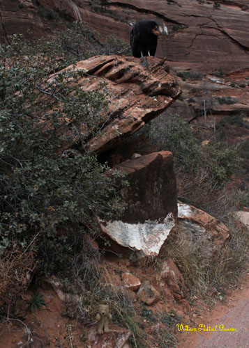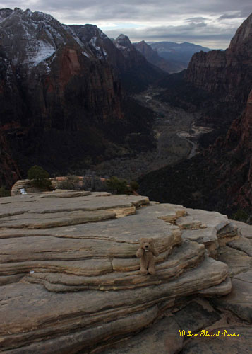 I partied with the group from Boston who had reached the summit before I did, because, well, how many folks can say they’ve conquered Angel’s Landing in the winter? We all went down together, also not as terrifying as I expected, past a chagrined Captain Condor, who took off into the sky and soared out of sight beyond the point where angels dwell!