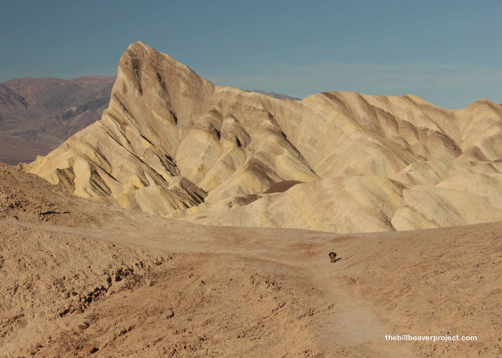 When I got to Zabriskie Point at 6:30 in the morning, I was hardly the first on the scene. There were cameras and tripods lining the bluff over Golden Canyon, though fortunately, no territorial disputes broke out while I was there. Zabriskie Point takes its name from Chris Zabriskie, who spent 48 years working for the Pacific Coast Borax Company that first gave Death Valley a reputation other than heck on earth. The spectacular formations came from deposits of mud, sand, and volcanic ash in an ancient lake, which dried up and left behind the eroding badlands. This created one spectacular landscape that I just had to explore!