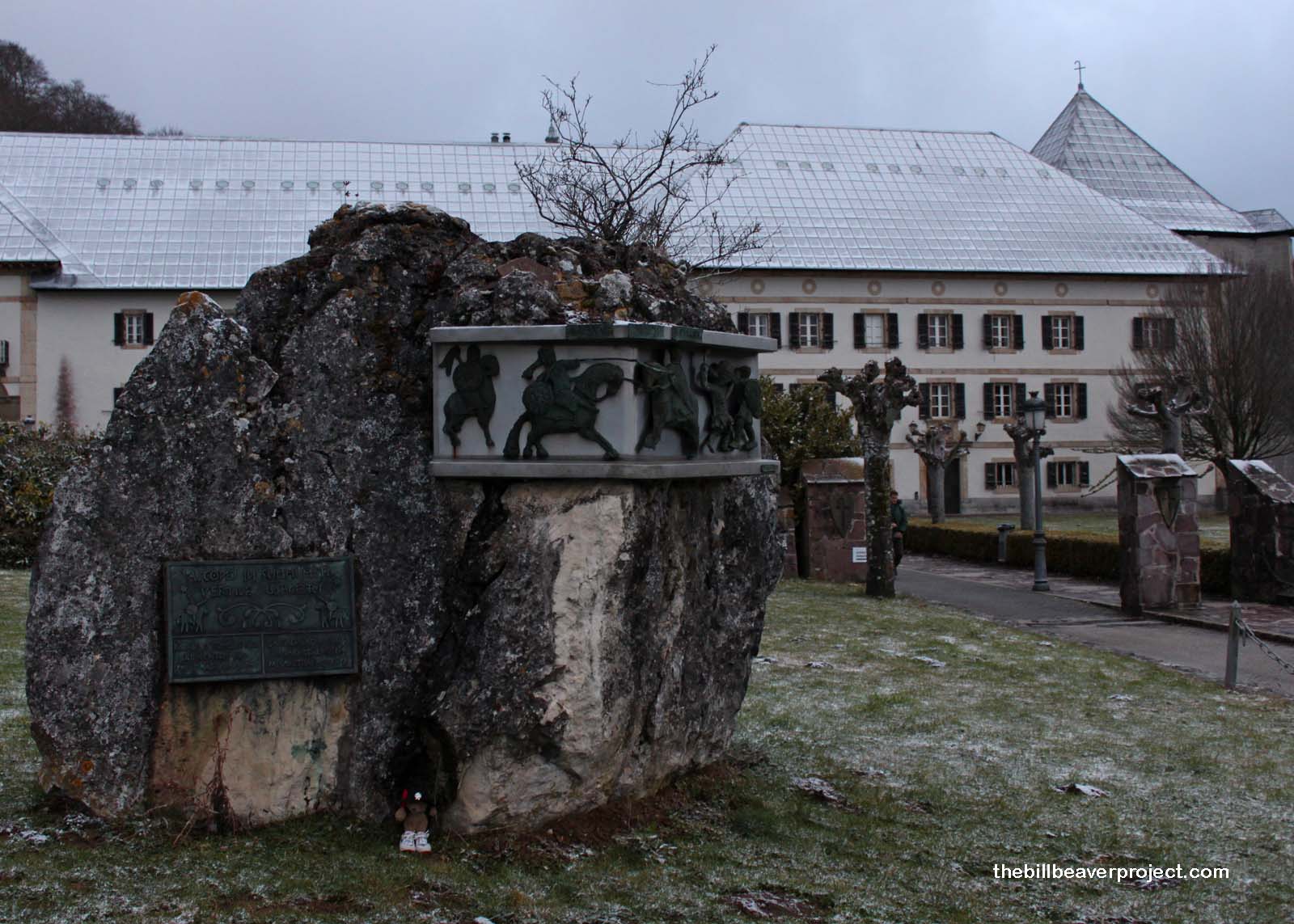 It was a hot night in the monastery! No, really, I was boiling in my sleeping bag, but once I stepped outside, I was amazed to see a dusting of snow covering the streets of Roncesvalles! Everything looked so peaceful and quiet, absolutely nothing like the events that made Roncesvalles famous.