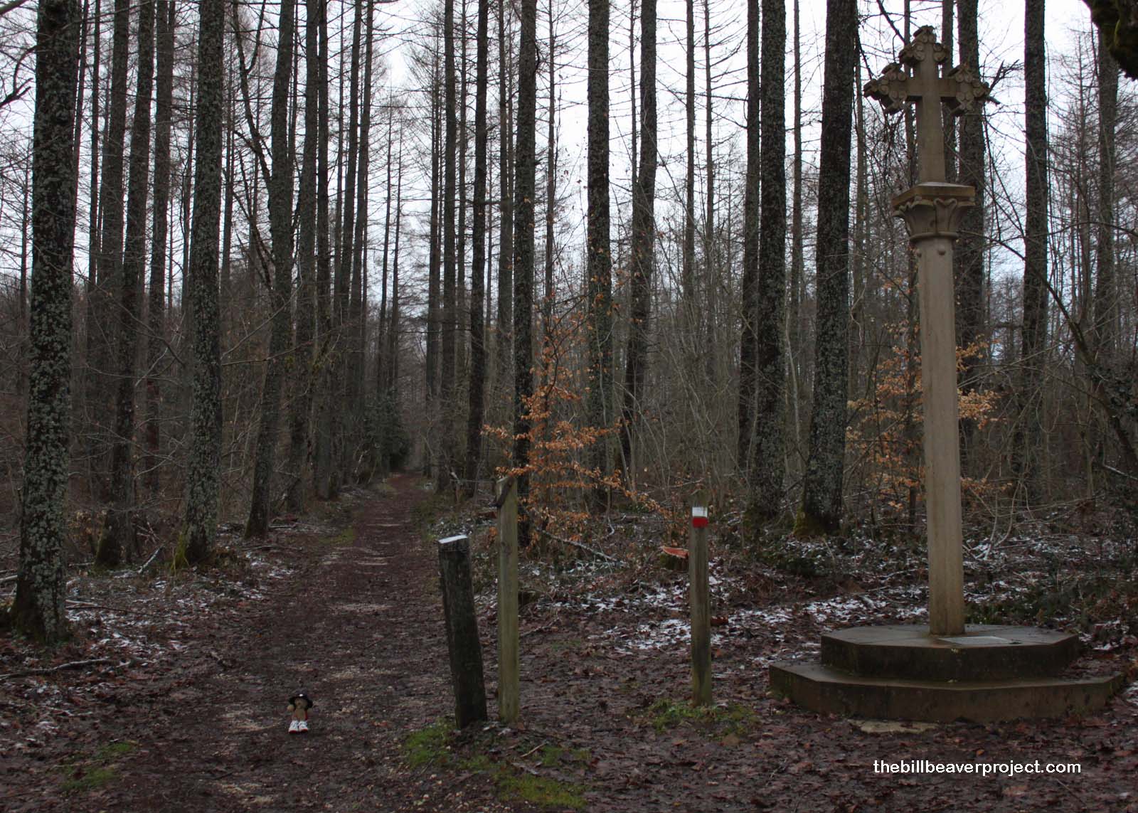 I don’t normally condone random violence or tacky puns, but it was time to hit the road! Heading down the path into the dark, quiet woods, I started to get chills and not just from the snow! It wasn’t until I reached the end and saw the White Cross that I realized I’d been walking in Sorginaritzagako Basao, the Oakwood of the Witches! Here, in the 16th century, some of the most well-known witch covens were held, prompting the installation of a White Cross to protect travelers from enchantment!