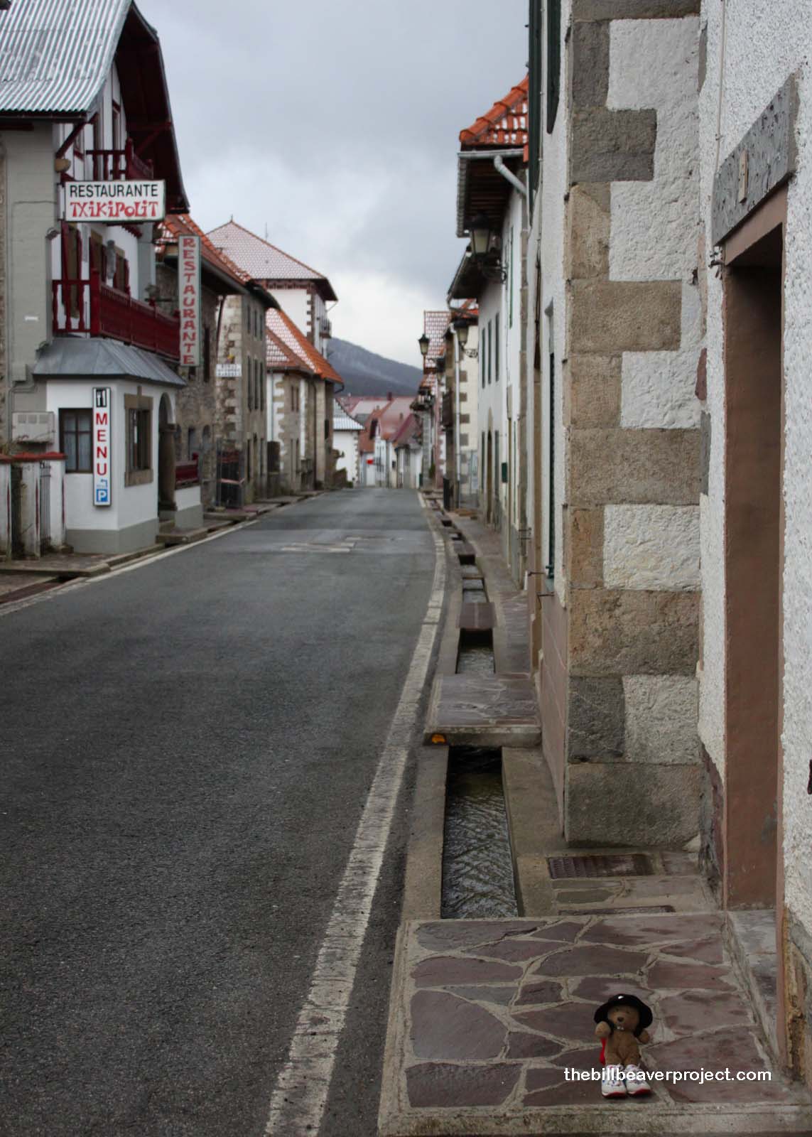 In any case, very little melting took place over the course of the day, which was as wintery as it could be! I passed through the charming town of Auritz, down a muddy road paved with cow poop, and into the woods again, where I encountered a group of my fellow peregrinos! One such peregrino, from Poland, gave me a cultural lesson in the town of Espinal. I had asked why there were so many huge houses in these tiny farming communities, and he replied that they had to fit the whole family: kids, parents, and grandparents.