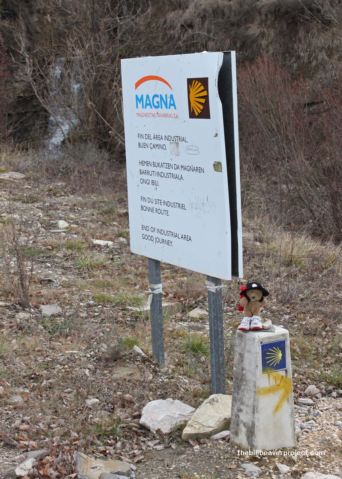 The final slog into Larrasoaña seemed to take forever, peppered with five-house towns that we constantly mistook for our destination. The sun suddenly turned hot, right as we were passing a magnesium plant, which was peppered with Jacobean scallop symbols. Who knew that heavy industry supported the Camino, which is supposed to be an escape from industry?