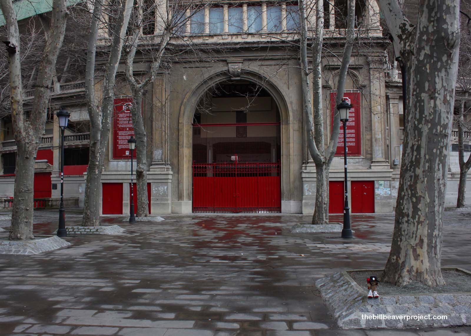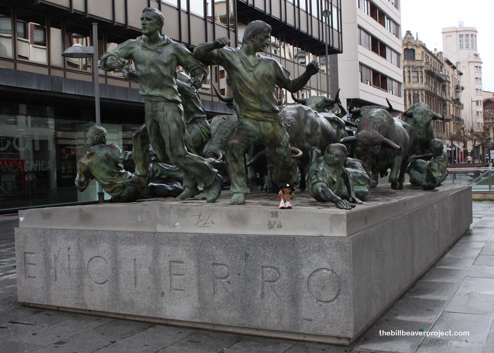 The rain clouds parted just enough for me to race to the Plaza de Toros, the third largest, but most famous, bull ring in the world! Every year on San Fermin’s Day (July 7th), the Plaza becomes the finishing point of the Running of the Bulls, where the bulls are locked in to face the toreros (this is called the Encierro)! Fortunately for me and my short legs, I was there months before any bulls took to the street. I remembered that because of a song I heard once long ago.