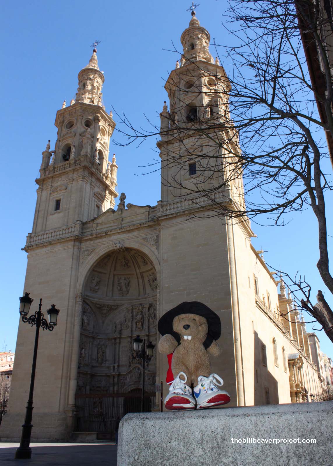 By the time Logroño came into sight, the path became paved, and if you’ve ever walked more than a few kilometers on pavement, you’ll recall that it can be murder on the feet! This is where I learned to love grass! After a long descent, the park at the entrance of the city was a patch of Heaven! Not only was it a great break from pounding the pavement, but it also provided a lovely view of the Rio Oja and the spires of the Concatedral de Santa María la Redonda in the background!