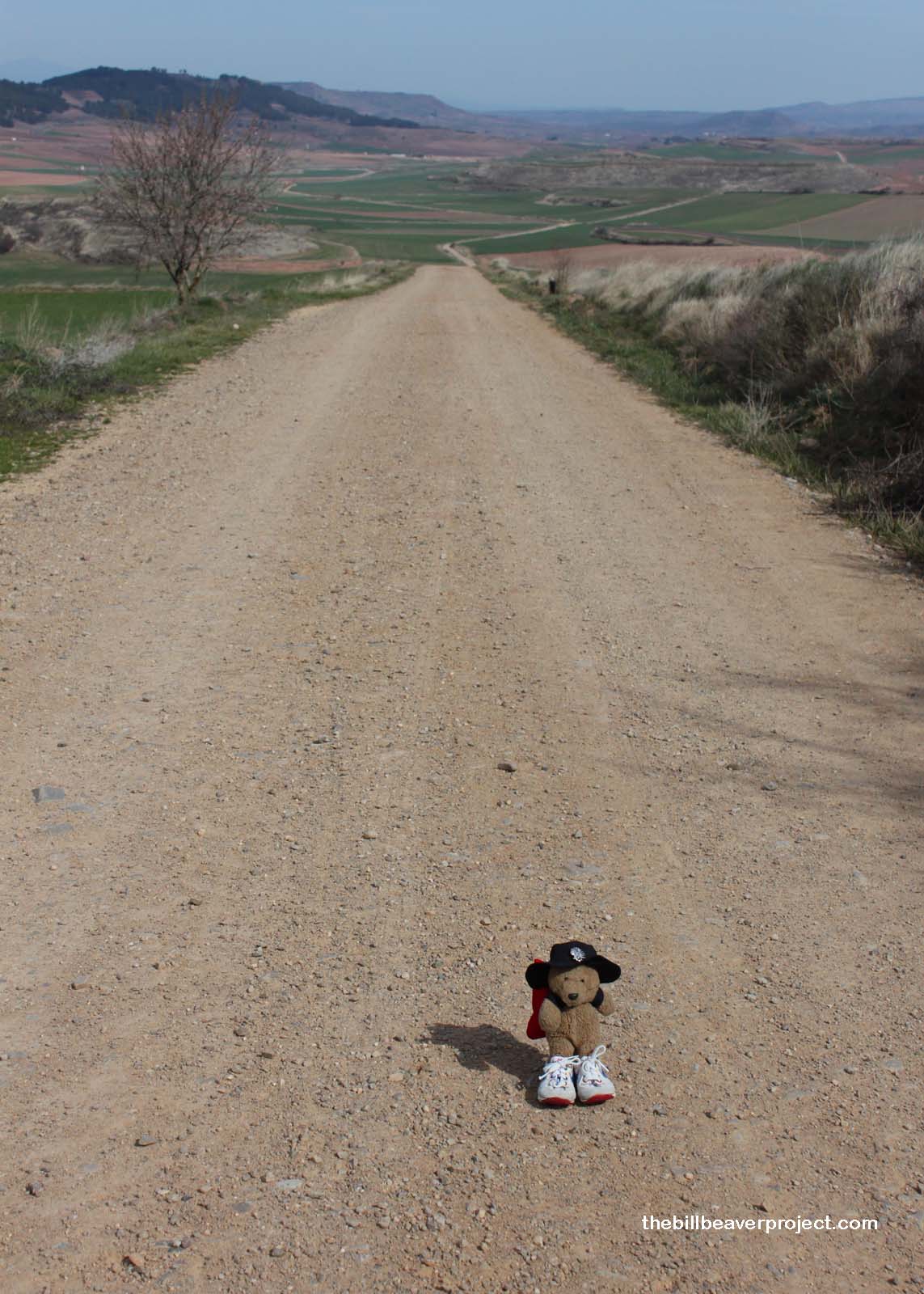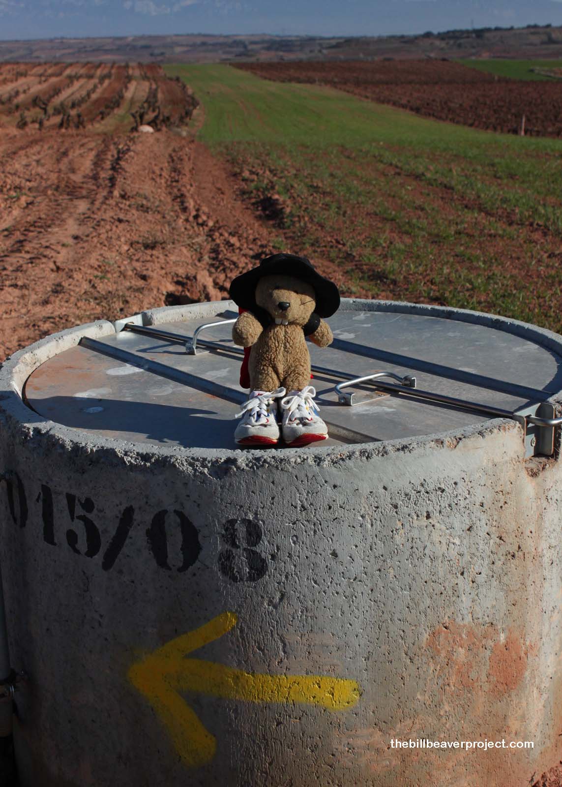 I didn’t think to take a picture in Cirueña. Walking and talking with Jean was great, but the hard dirt was rough on my feet and my left hip was hurting. I wanted an albergue break! Of course, not only were all the albergues closed, but the town was post-apocalyptic! Surrounding the vacant golf course stood dozens of huge, identical, bunker-style apartment/condos with the iron curtains drawn over the windows. There was no one on the street, no one in the municipal swimming pool, no sign of life except for the “Se Alquila” (“For Rent”) signs flapping in the breeze! And this was the new part of town! The old part was corroded! The remains of ancient buildings mixed with more modern, but almost as dilapidated, residences. At any minute, I expected a horde of zombies to drag their feet toward us so they could slurp our brains like horchata!