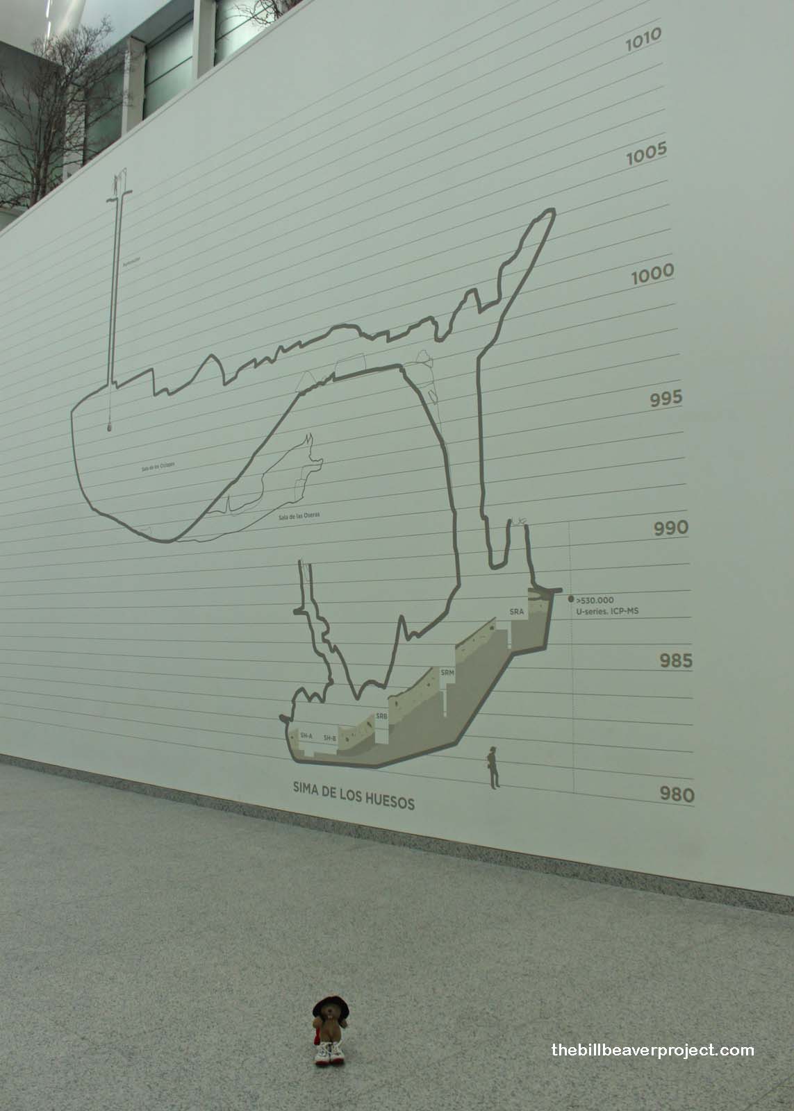 Opened in July 2010 (a huge year for the Camino), this museum is spacious, rising four whole levels! The bottom level provides all the details of the Atapuerca findings that were otherwise inaccessible yesterday. Turns out I’d made the mistake of thinking the oldest specimen was 800,000 years old. That was the oldest age of the fossils found before 2007 when the Atapuerca Research Team unearthed a hominid jawbone in the Sima del Elefante dating back 1.2 million years!