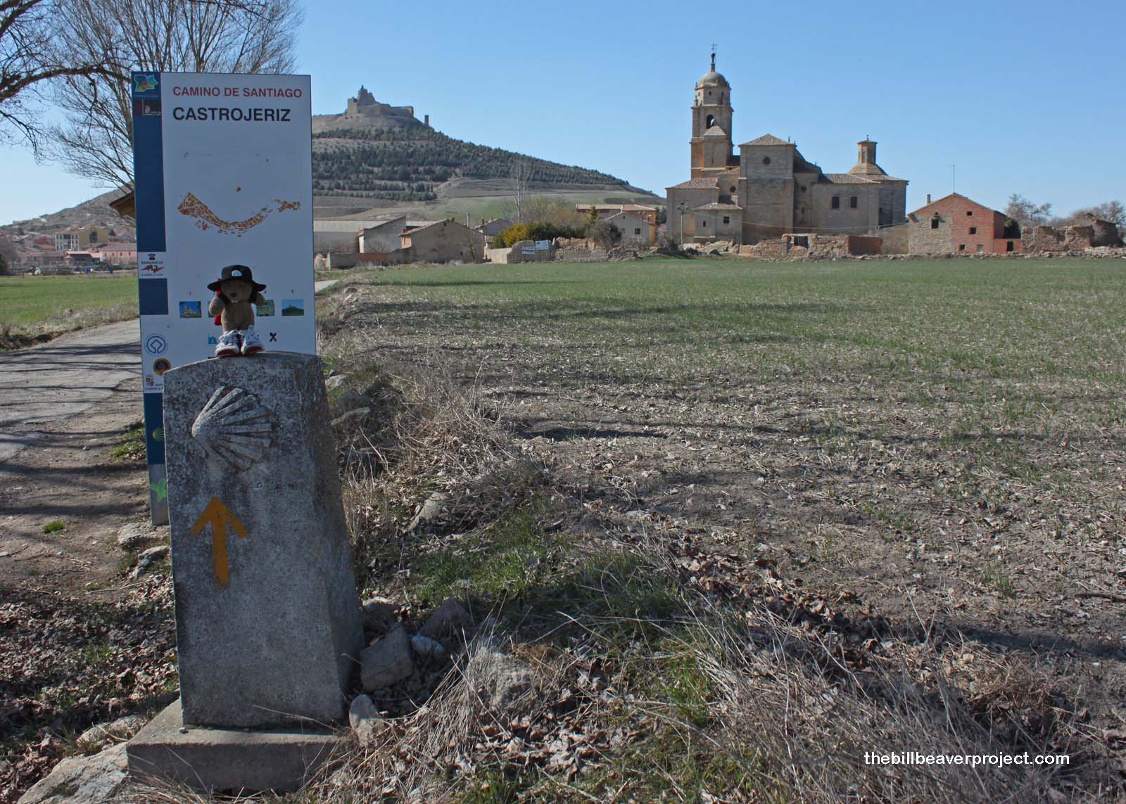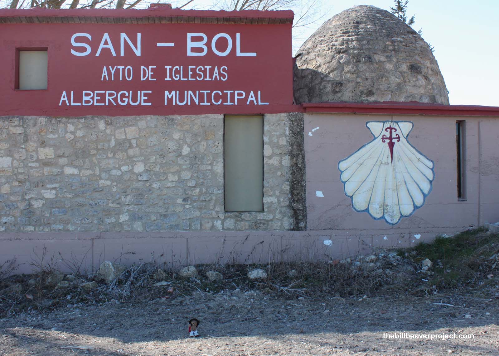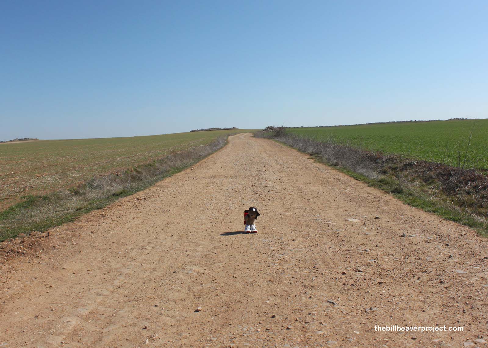The spring is like a miniature pond: though a fountain keeps it circulating, there is a garden of algae at the bottom. In short, I would not recommend drinking from it, but boy, oh boy, did it ever feel nice to take a dip! Of course, it may be a bit cold for the average peregrino, but who knows? I’ve heard of humans taking swims in waters no sane beaver would ever attempt! I have to say, though, that after I got back out of the water, shook myself off, and reapplied the Vaseline to my feet, I felt pretty darn swell, so much so that I charged onward to Hontana!