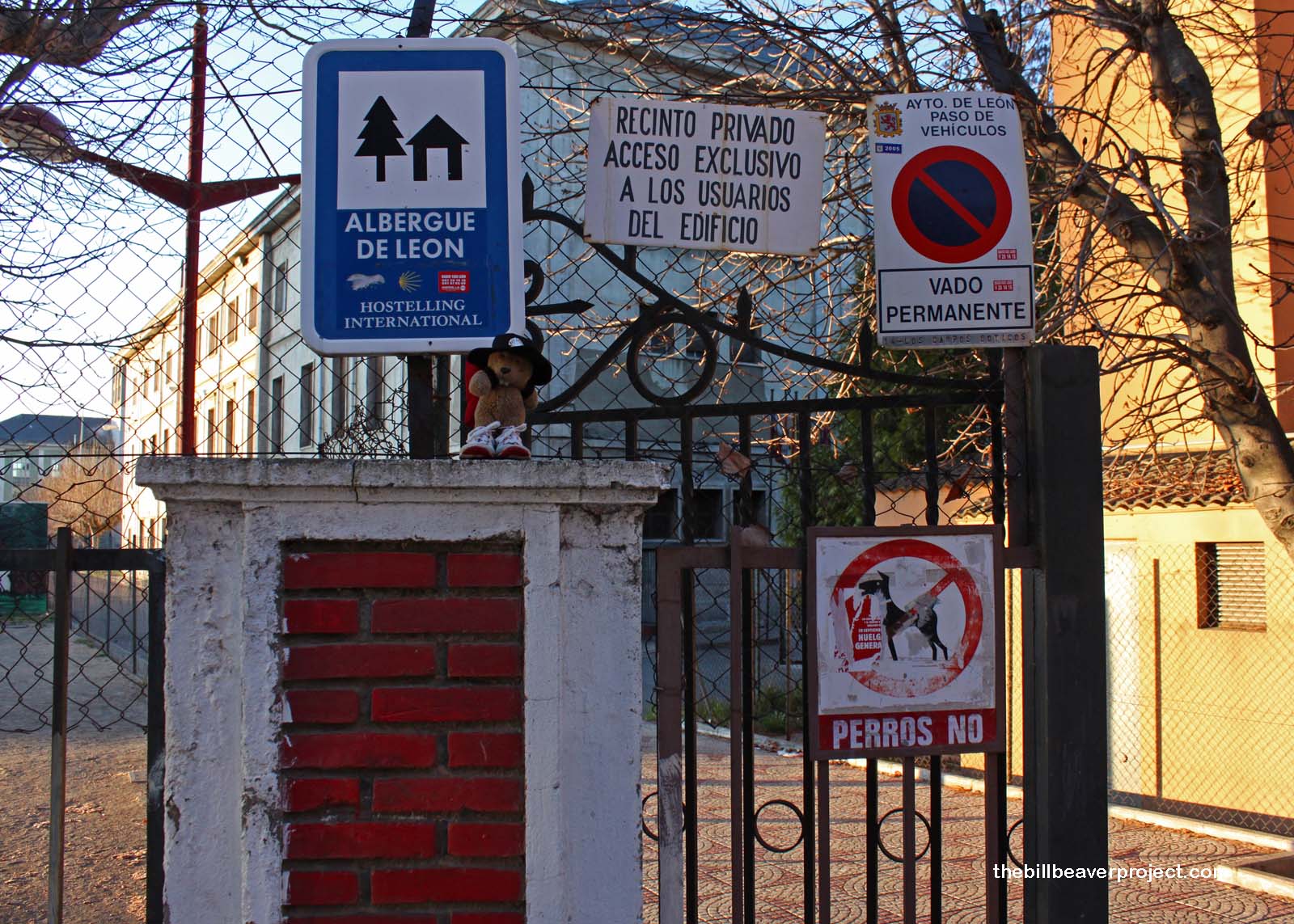 I didn’t stop in Arcahueja after all. I ran into a group of folks with backpacks as big as mine (let’s compare body sizes), and the thought occurred to me that these might be the sort of peregrinos who ship their backpacks between cities. I thought that was a great injustice and swore to stay ahead of them, no easy task! That pushed me past Arcahueja and all the way into León, a 40K day! Being Sunday, the streets of this big city were almost deserted! It was so eerie, as was the heavily secured albergue with its high fences and surveillance cameras!