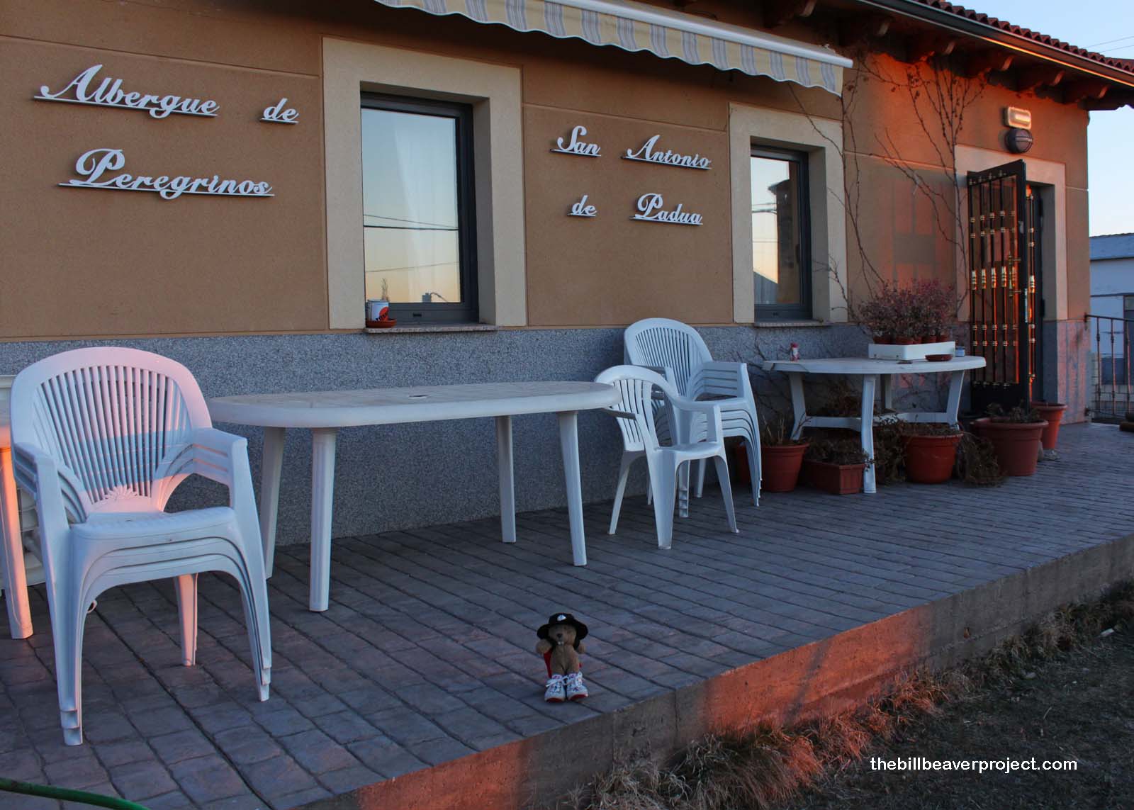 I stopped at the first albergue in town, San Antonio de Padua after I was hailed by a few of the folks I’d met back in Calzadilla de los Hermanillos. Niall from Scotland and Aaron from Cornwall had already gone through a bottle of wine and were opening another before heading to the bar. They had made the aforementioned bridge mistake and didn’t realize they had completely skipped León until they reached Virgen del Camino! Someone really ought to update the arrows in town if this is a common problem! I declined their offered glass of wine, but since the evening had turned chilly, I followed them to the bar, where I had some hot tea and watched some old timers playing dominoes.