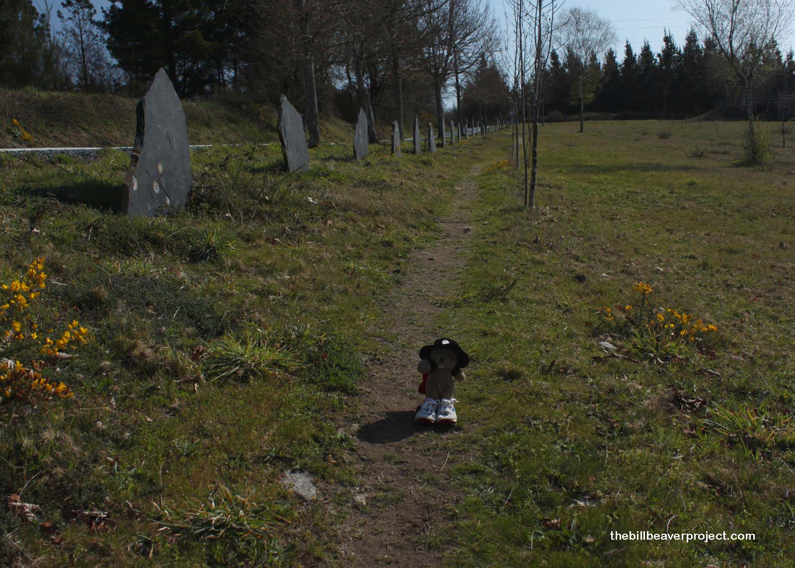 The post-lunch stretch to Melide followed the new pattern of Galicia: hot and shadeless. However, the incredible aulagas compensated for the heat! Did you know that the aulaga flower explodes when an insect touches it? That covers the poor bug with pollen to be taken to the next flower for the process to start all over again! That must make for some awfully jumpy bugs, don’t you think? Explosiveness aside, these aulagas did their best to beautify the memorial garden for the Order of St. James, right next to a feed processing plant just down the road.