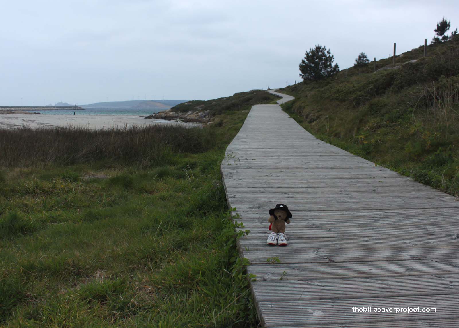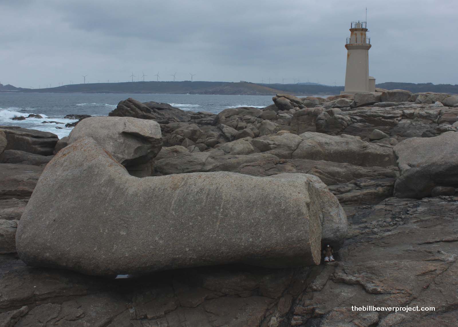 After a long walk through the woods, I caught my first sight of the ocean! There’s something about a stormy ocean that I find particularly beautiful, so I picked up the pace all the way down to where the Camino turned to boardwalk. I sure hadn’t expected a boardwalk! The seagulls that had encouraged me sporadically since Santiago were now a mass of white feathers circling over the city, calling “Go! Go! Go!” That drove me right into the wonderful fishing village of Muxía, which some cynics called “touristy,” but I only saw one souvenir shop in the whole town!