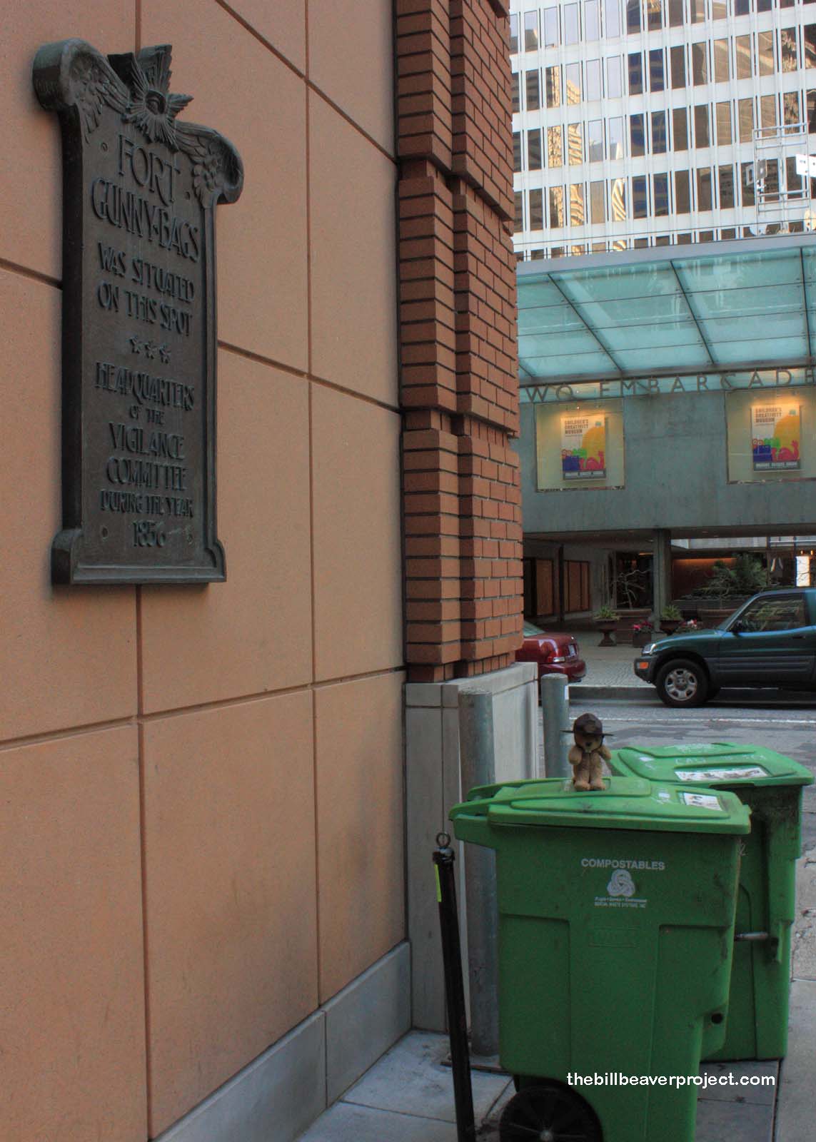 The majority of places have been modernized, with plaques stuck on walls in unattractive alleyways. Now an Omni Hotel, the Parrott Granite Block (#89) of 1852 was formerly a banking facility built entirely out of granite imported from China! Fort Gunnybags (#90), now in the garbage area of 24-Hour Fitness, was formerly the Headquarters of the Vigilance Committee, a very powerful vigilante group that often defied the government in hunting down and executing suspected criminals!