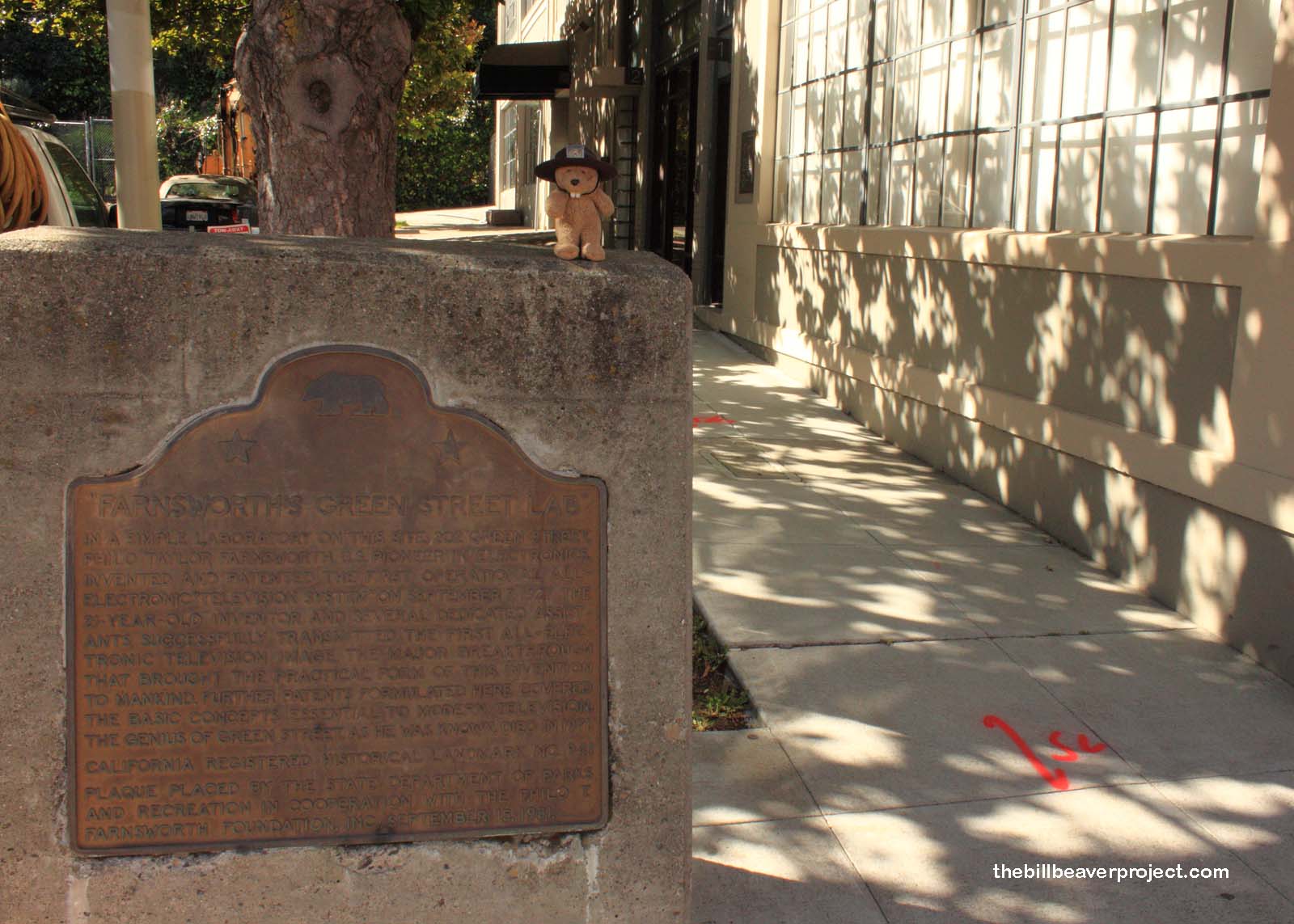 I wiggled around Portsmouth Plaza, where Chinatown was abuzz with Chinese New Year celebrations, which surprised me because I thought the Lunar New Year was weeks ago! Nevertheless, the delays of Mellus and Howard had pushed me so far back that I couldn’t stay to enjoy the festivities as I’d promised myself two years ago. I scrambled around Portsmouth Square, where the first American flag was planted in California, the first public school arose, and Sam Brannan announced his gold discovery in 1848, before heading north to a site that filled me with nostalgia: Philo T. Farnsworth’s Green Street Lab (#941). Here, Mr. Farnsworth invented television as we know it, after a long journey from his home in Beaver, Utah, which I visited in 2011 with my brother, Woodchuck. Ah, memories…