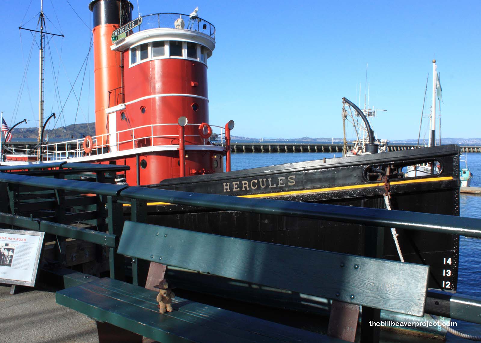 Next in the loop came the Hercules tugboat, a truly impressive vessel. Hercules tugged her sister ship, Goliah all the way from Camden, New Jersey around the Strait of Magellan to San Francisco! This was not an uncommon trip for a boat like this, actually, because winds to the west of South America made sailing up the coast particularly difficult. Sometimes, the big ships that couldn’t, needed help from a little tugboat that could! Hercules transported lumber and pulled other ships to their final destinations (mostly museums) until 1962, when diesel-powered tugboats took over. Now, she rests in stately splendor on the Hyde Street Pier!