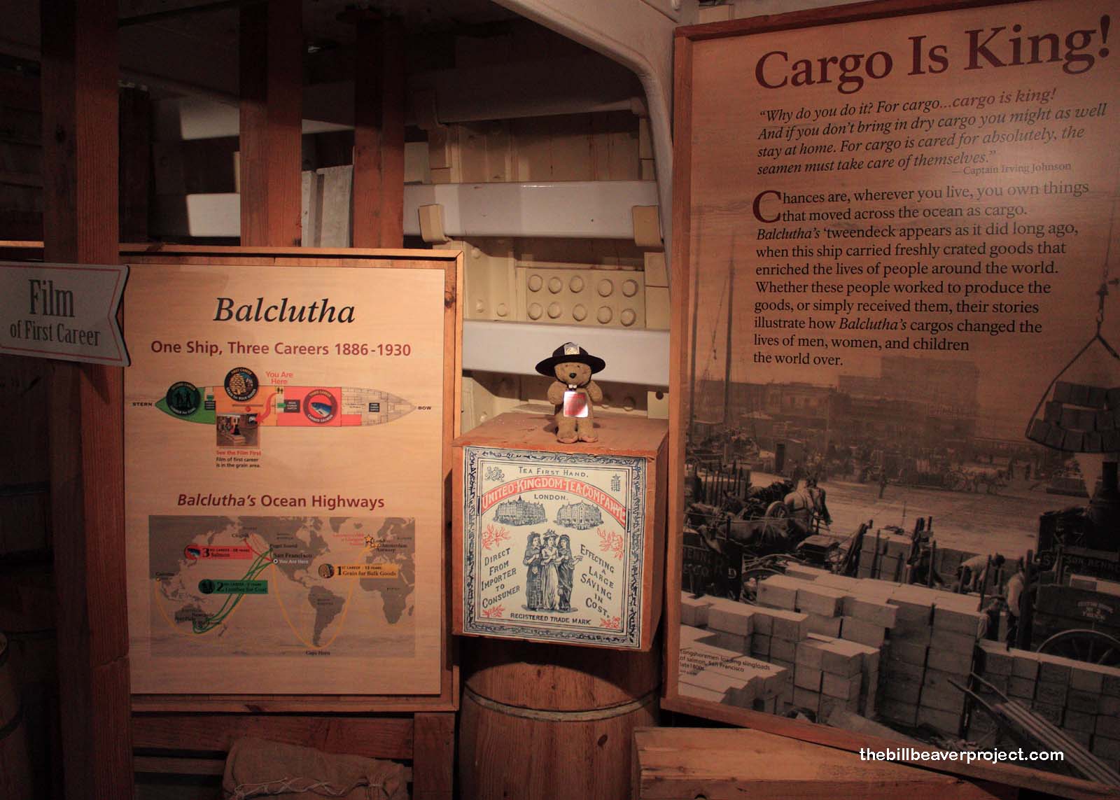 However, fascinating as her history was, the thrice-renamed Balclutha held a dark secret: she is carnivorous! Deep in her cargo hold, as I set the camera and clambered to the top of what looked like an exhibit of solid boxes of canned salmon, I discovered to my horror that the boxes were a façade! They were less than two inches thick, and in my momentum, I lost my balance and fell back into a tiny, isolated room!