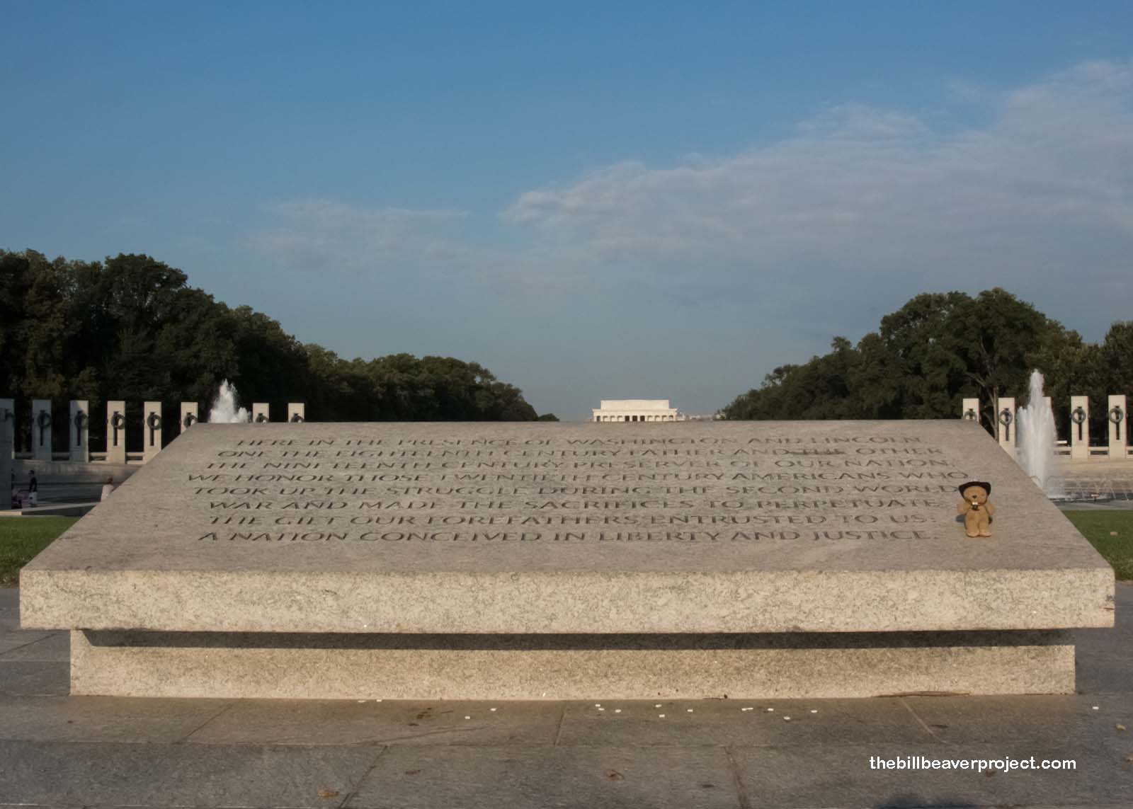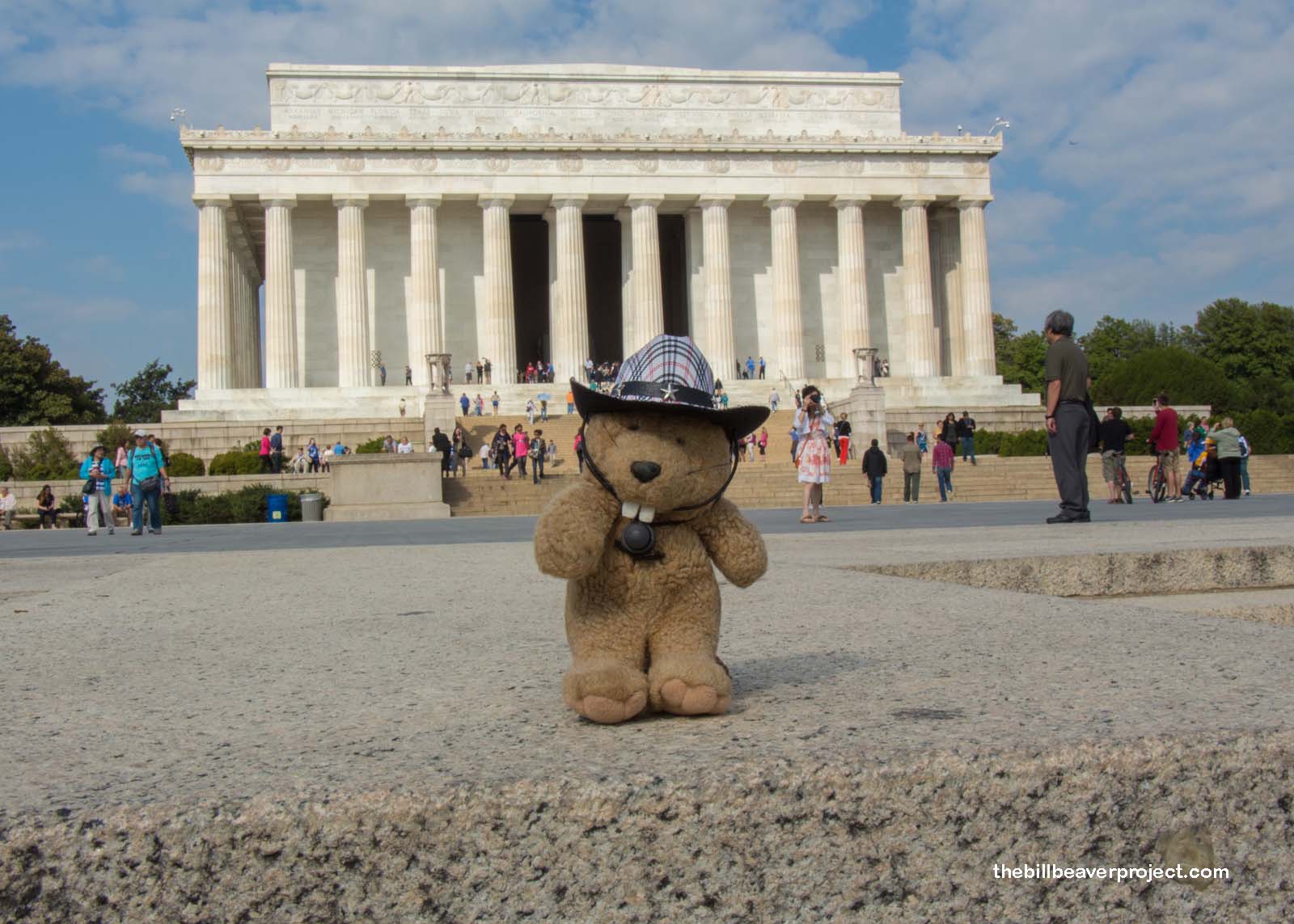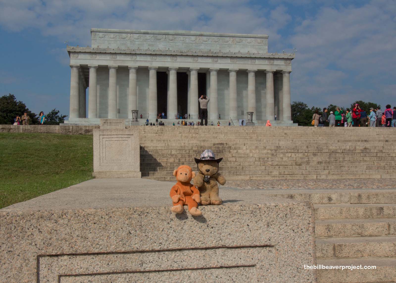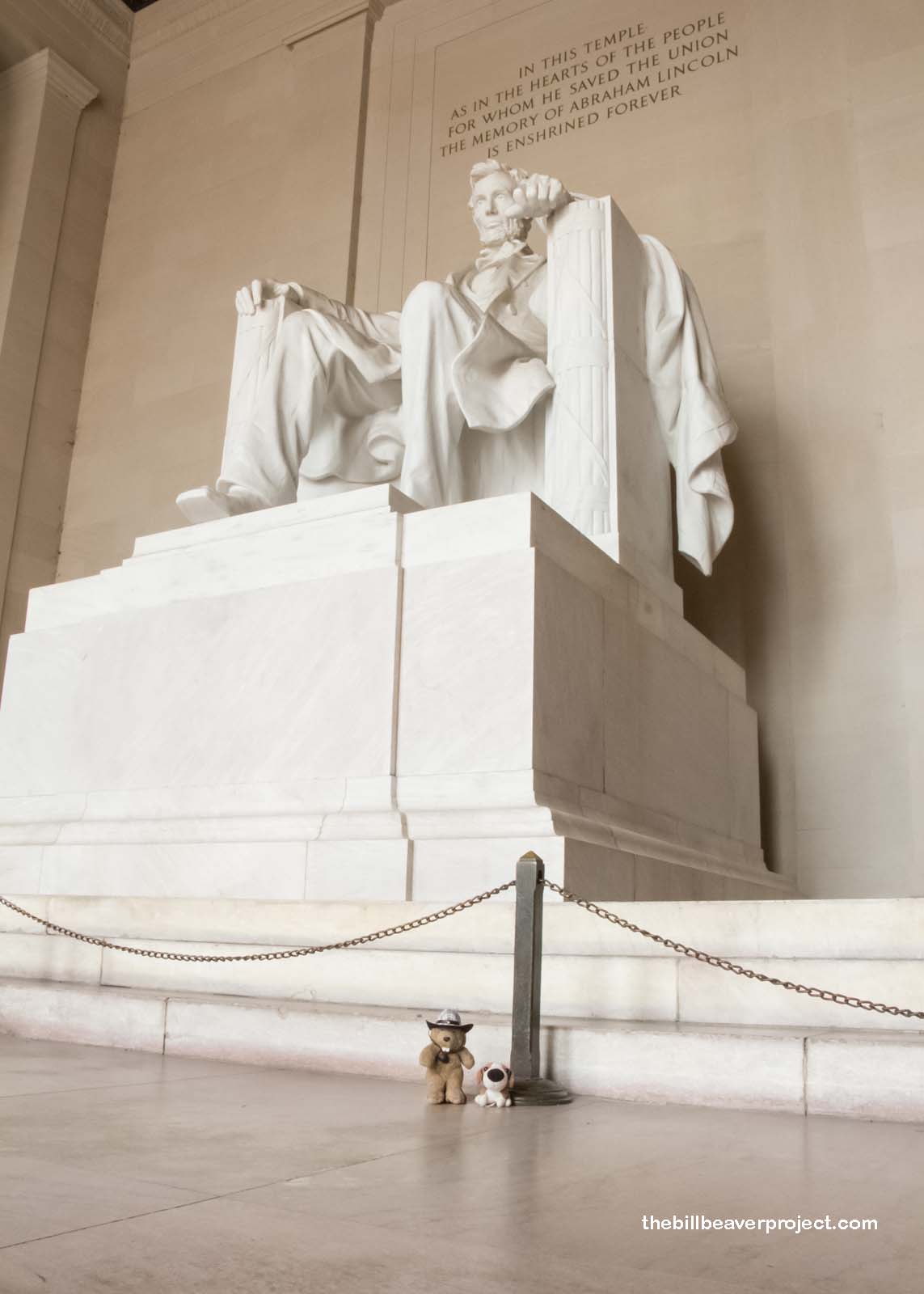The next memorial drew even more people, probably because it was designed to honor the president who brought our nation back together after the Civil War: Abraham Lincoln! The 19-foot statue of the president inside this temple is one of the most recognizable symbols of American patriotism, and it is flanked on both sides by his Emancipation Proclamation and Gettysburg Address! It also turned out to be a great spot to meet other traveling animals!