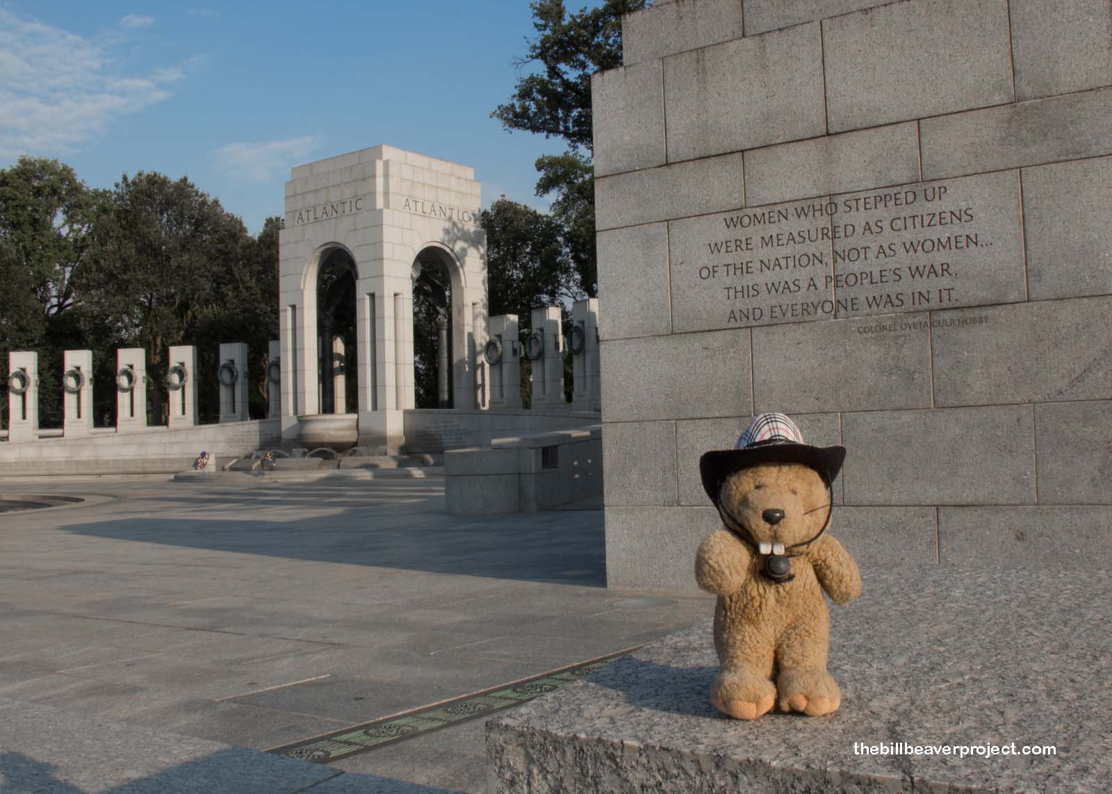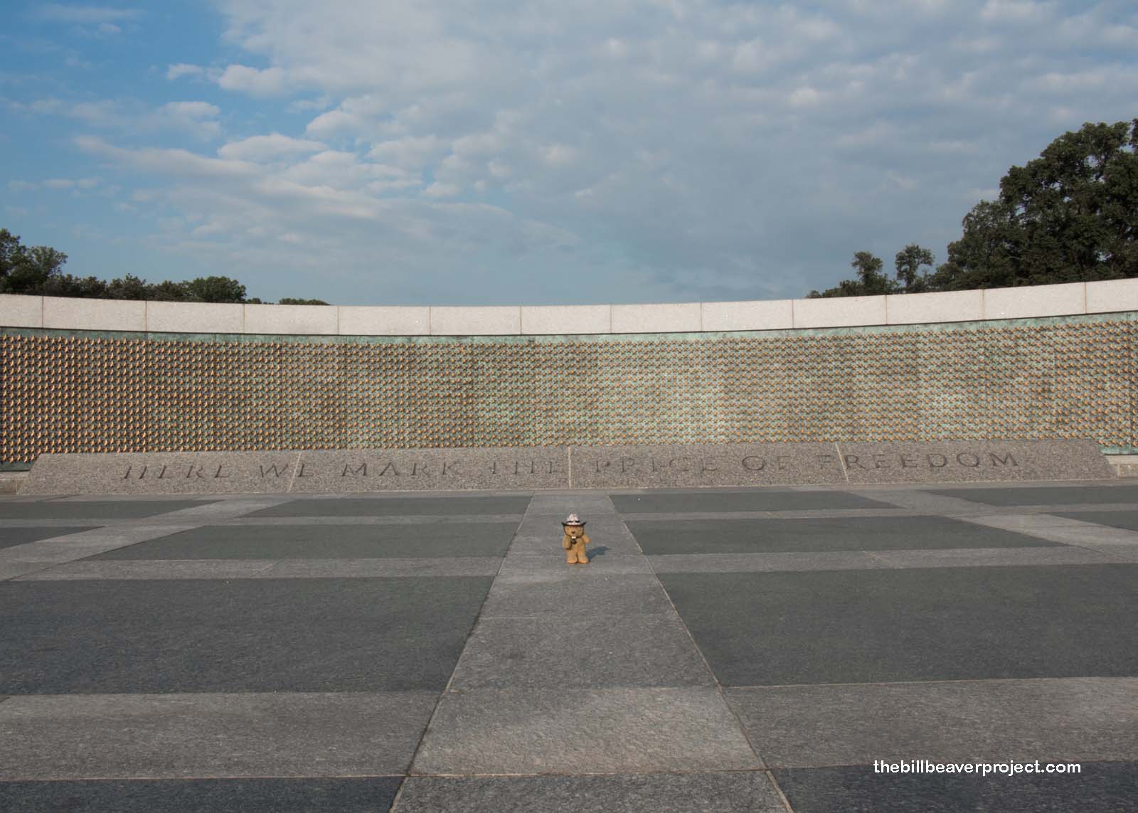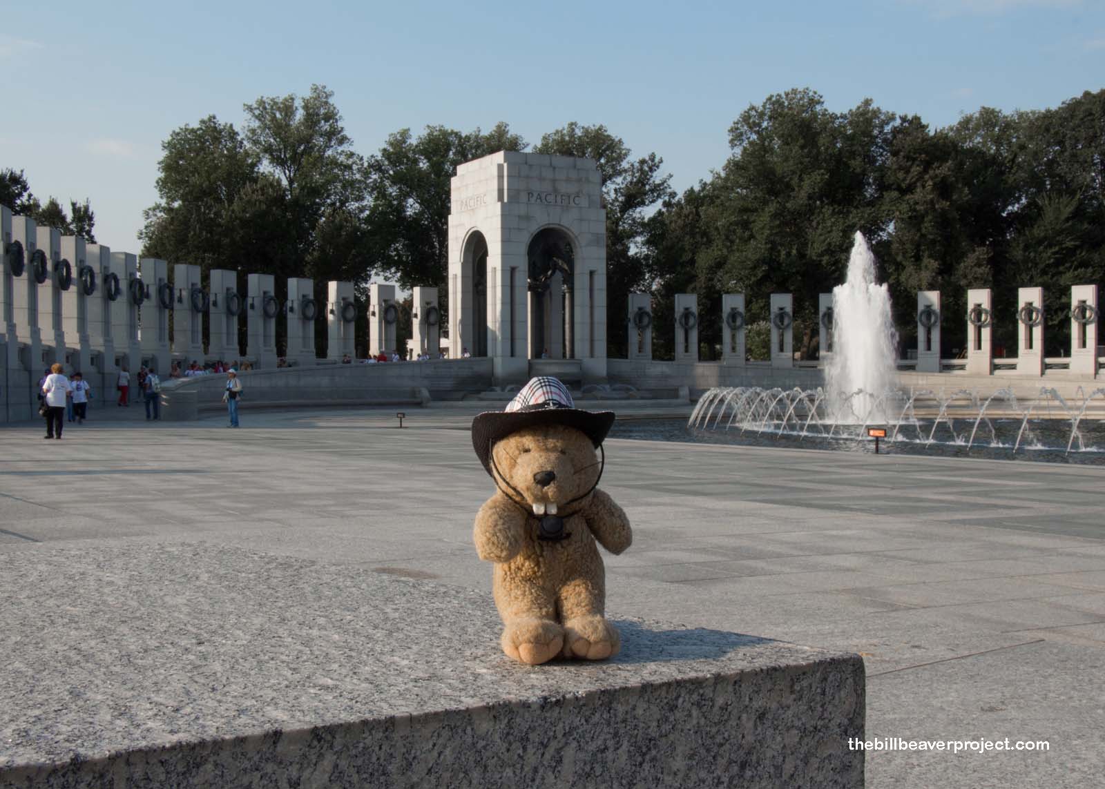 Since most of these folks were veterans of the second World War, our first stop was at one of the newest memorials (2004) on the National Mall: the World War II Memorial! Seated directly between the Washington Monument and Lincoln Memorial, the World War II memorial features columns for all fifty states, a monument to victory in the Atlantic, and the Pacific, and a gallery of 4,048 gold stars to commemorate the 405,399 American lives lost during the war!