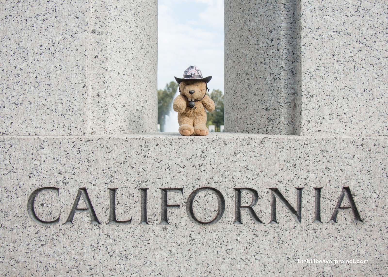 Here, the veterans lined up in their wheelchairs, facing the Lincoln Memorial, and watched a color guard presentation. It was short and sweet, and then the veterans were invited to visit the columns of their native states. Even though Eddie lives in Utah now, he was living in the Bronx when he was drafted. I also couldn’t help snapping a photo at California: