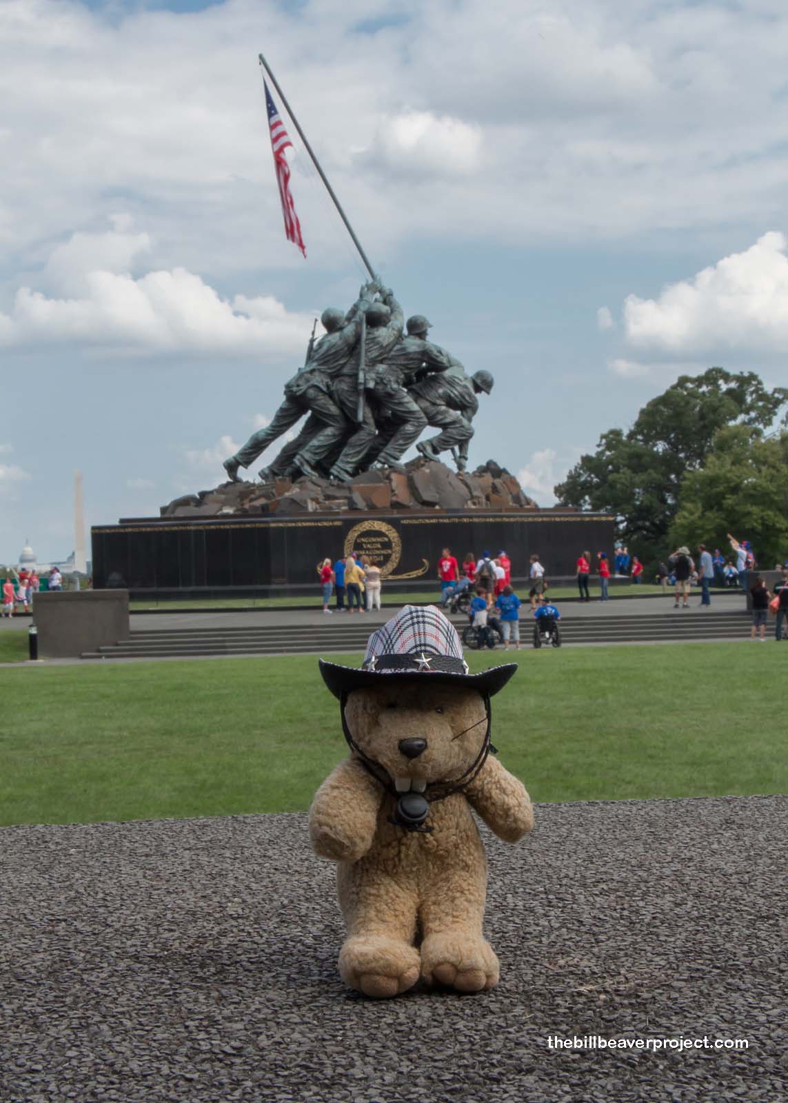 The next site we visited didn’t come with a ceremony, only a wander. It was the US Marine Corps War Memorial, a 78-foot high replica of the four soldiers who famously raised the American flag atop Mount Suribashi during the Battle of Iwo Jima! As you walk around the statue, it gives the illusion that the flag is being raised! It’s a symbol of tenacity in the face of danger, as only two of these soldiers made it off Iwo Jima alive. As such, the memorial remembers by name every principal Marine victory in America’s history!