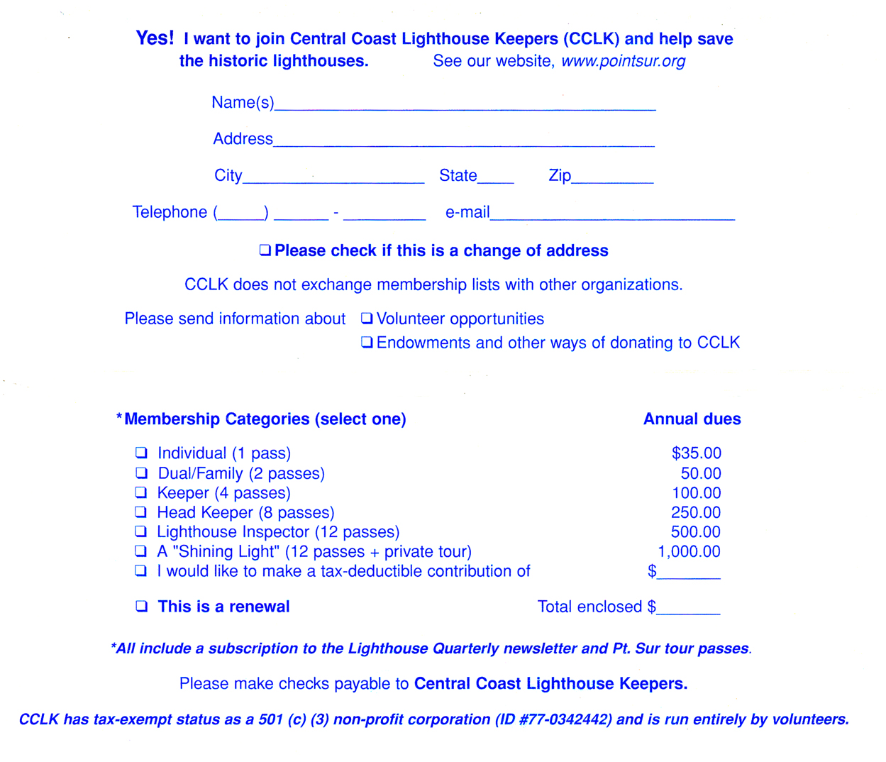| What makes it historical? | THE GUIDE SAYS: Spanish explorers and later New England hide and tallow traders found the Big Sur coastline a great hazard. Heavy fogs and extreme winds caused the wreck of many vessels on this coast. The Gold Rush of 1849 dramatically increased coastal shipping. A lighthouse was clearly needed. President Andrew Johnson signed the Executive Order which reserved the site for lighthouse purposes in 1866. Construction began in 1887 and the lamp was lit on August 1, 1889.