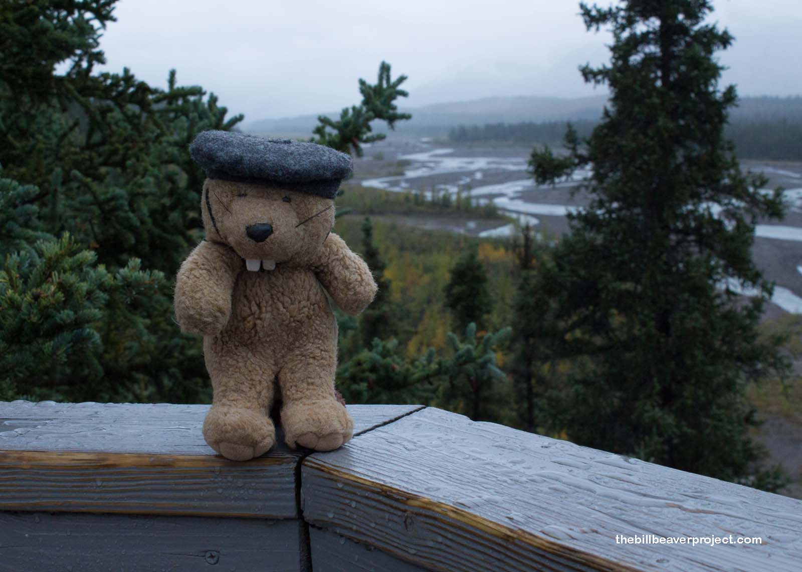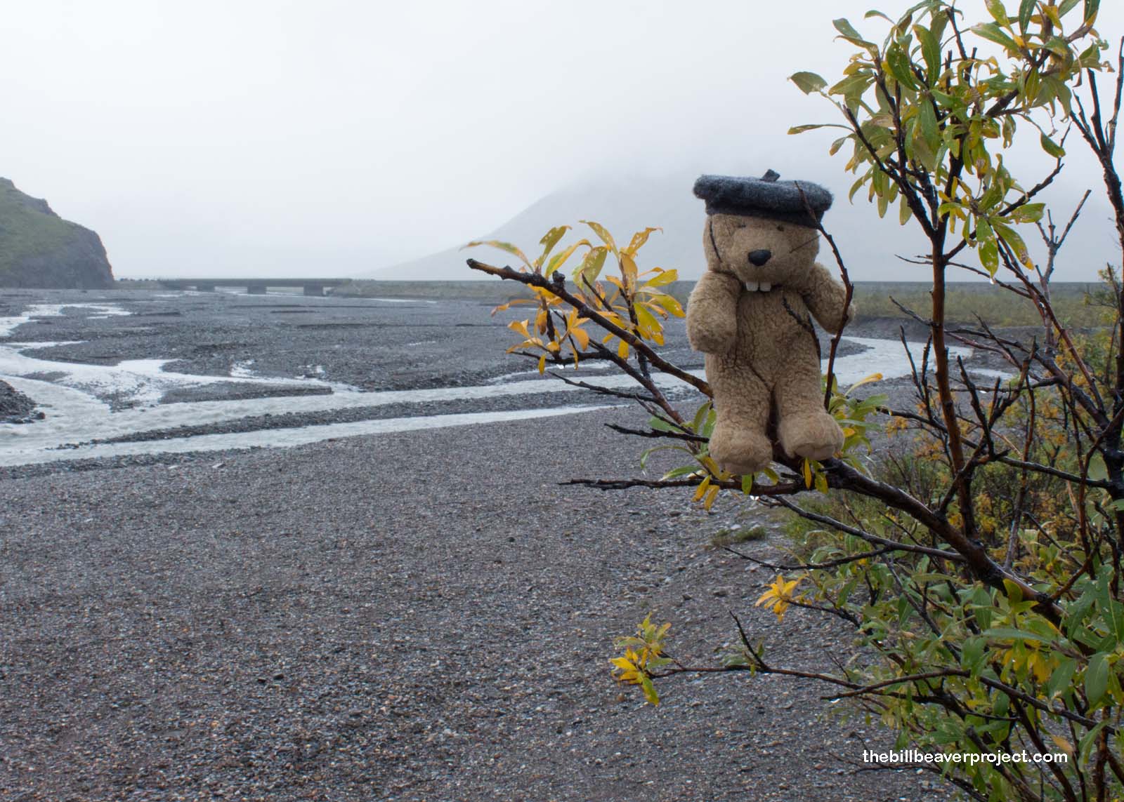 The rain continued to fall, and the wildlife crawled to shelter for the next leg of the tour, making it a laid back and relaxing ride to the Toklat Visitor Center. In between rain squalls, I got to take a good look at the twisty, windy Toklas River. Alaska is famous for braided rivers like this, which form from glacial meltwater carrying lots of sediment. As the sediment builds up, it shifts the water flow. This happens a lot, so plants can’t grow in the river bed!