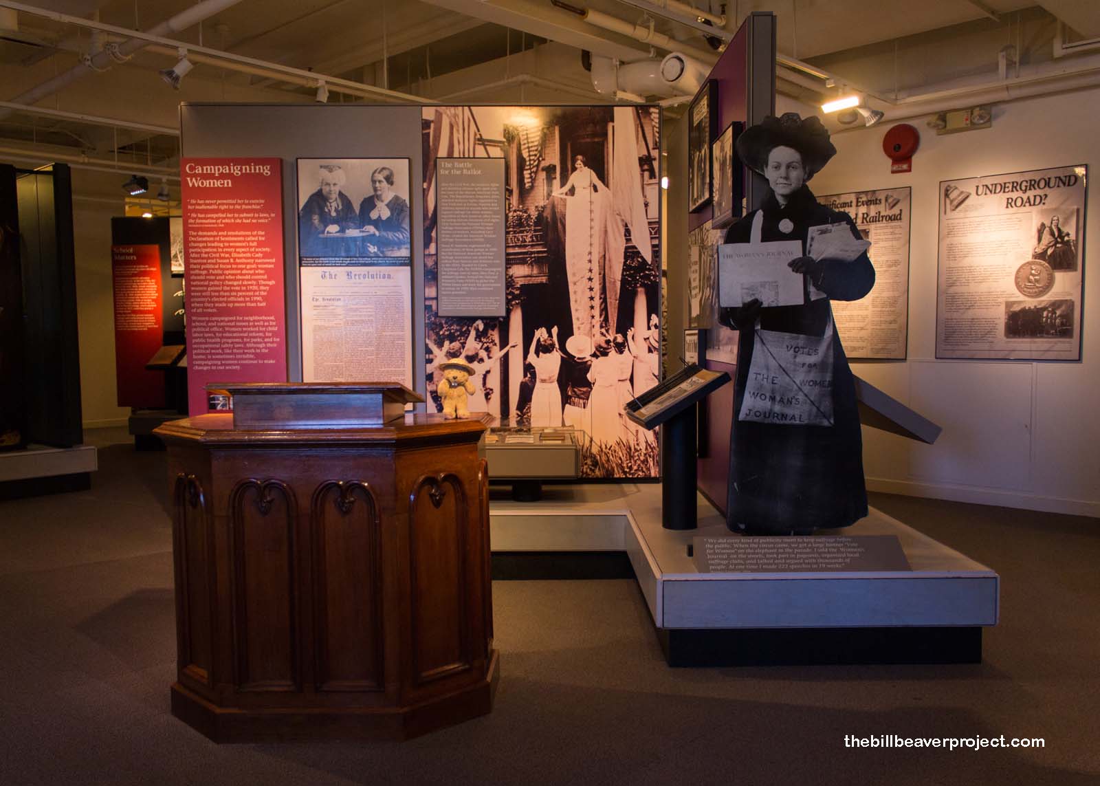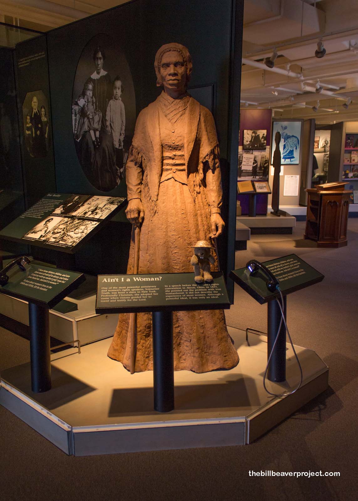 Upstairs, the exhibits really got in depth about the struggles women faced in their hunt for rights, the ridicule, the bullying, the jail time. Few knew more about struggle than Sojourner Truth, who had been helpless to prevent most of her thirteen children from being taken from her and sold into slavery. She became a powerful voice, both for abolition and for women’s rights, pointing out that her womanhood and motherhood deserved respect!