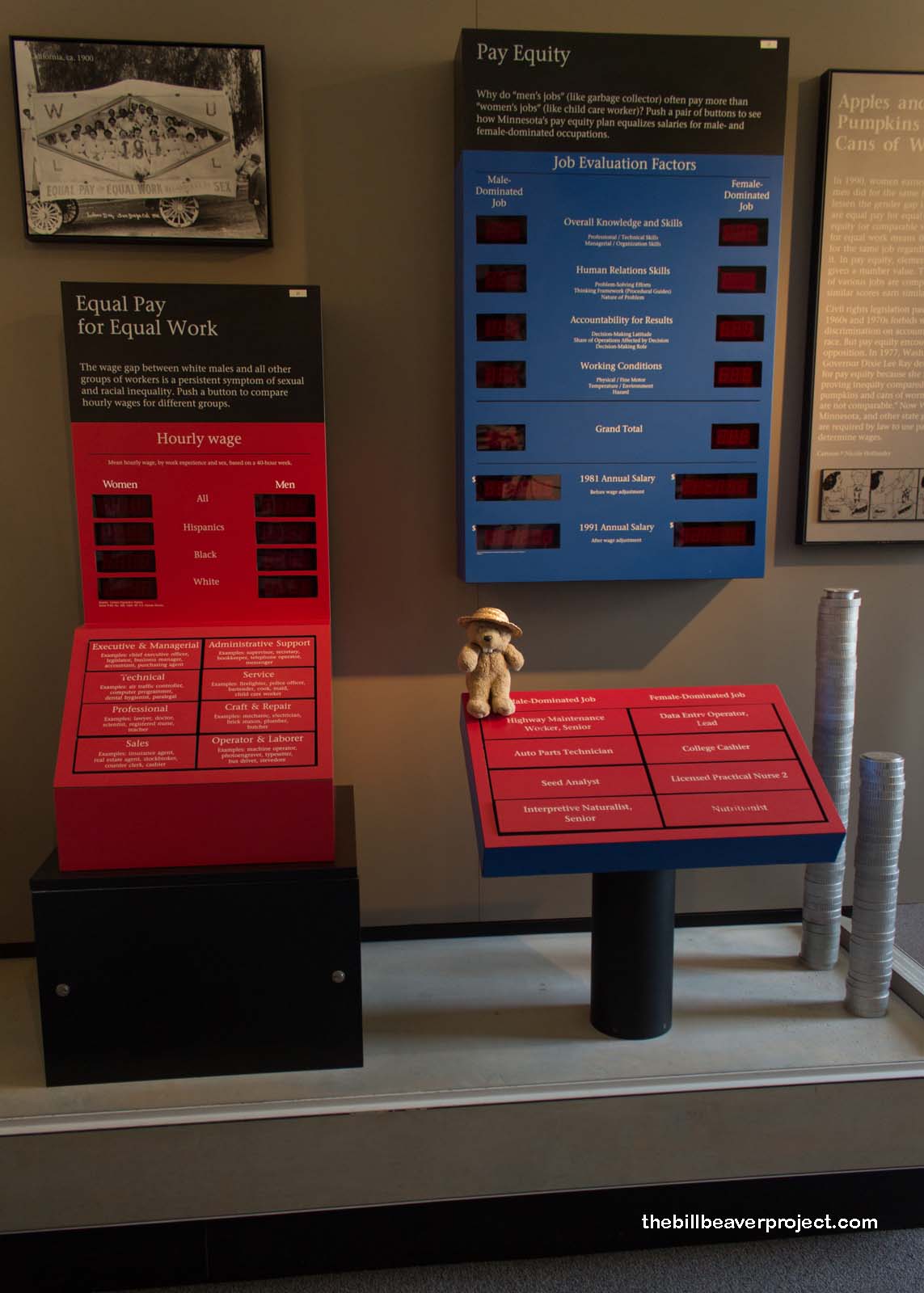 Women still face struggles to this day! One exhibit compared, side by side, how equal work leads to different wages for men and women! Another interactive display demonstrated the world of job possibilities that men men can access and the smaller selection available for women, even today! The fight isn’t over, folks!