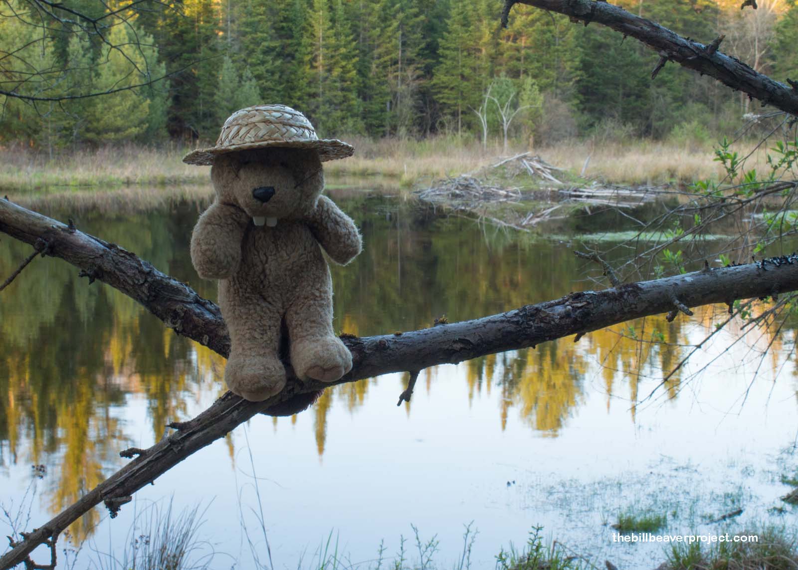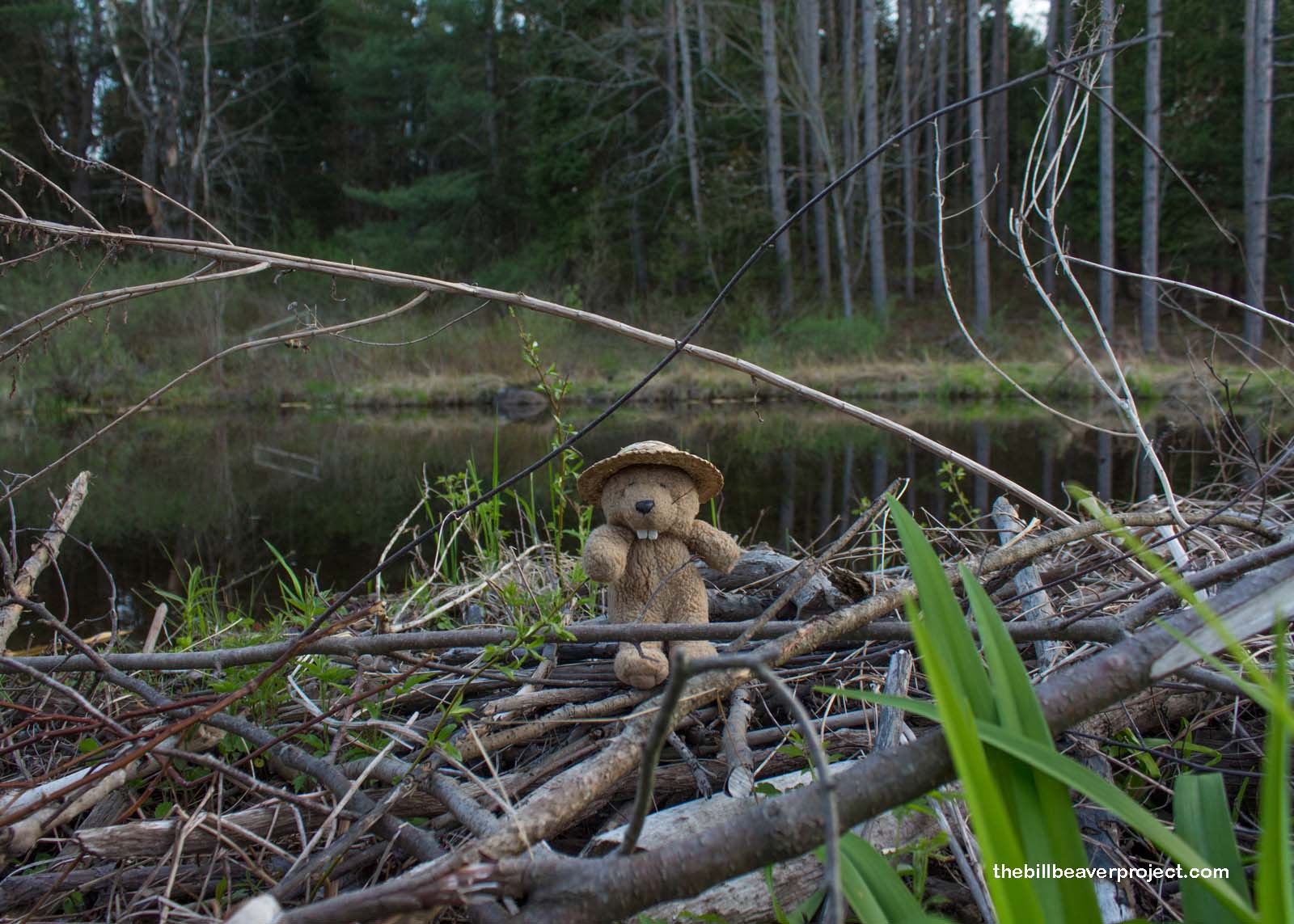 There are two ponds next to the Richards home with a short nature trail running around it. I went to see if the beavers were home, but it looked like they’d gone out foraging. Some geese, floating around the lonely lodge, honked “Hello!” but all in all, this was a quiet, serene place to watch the sun set. A sanctuary indeed!