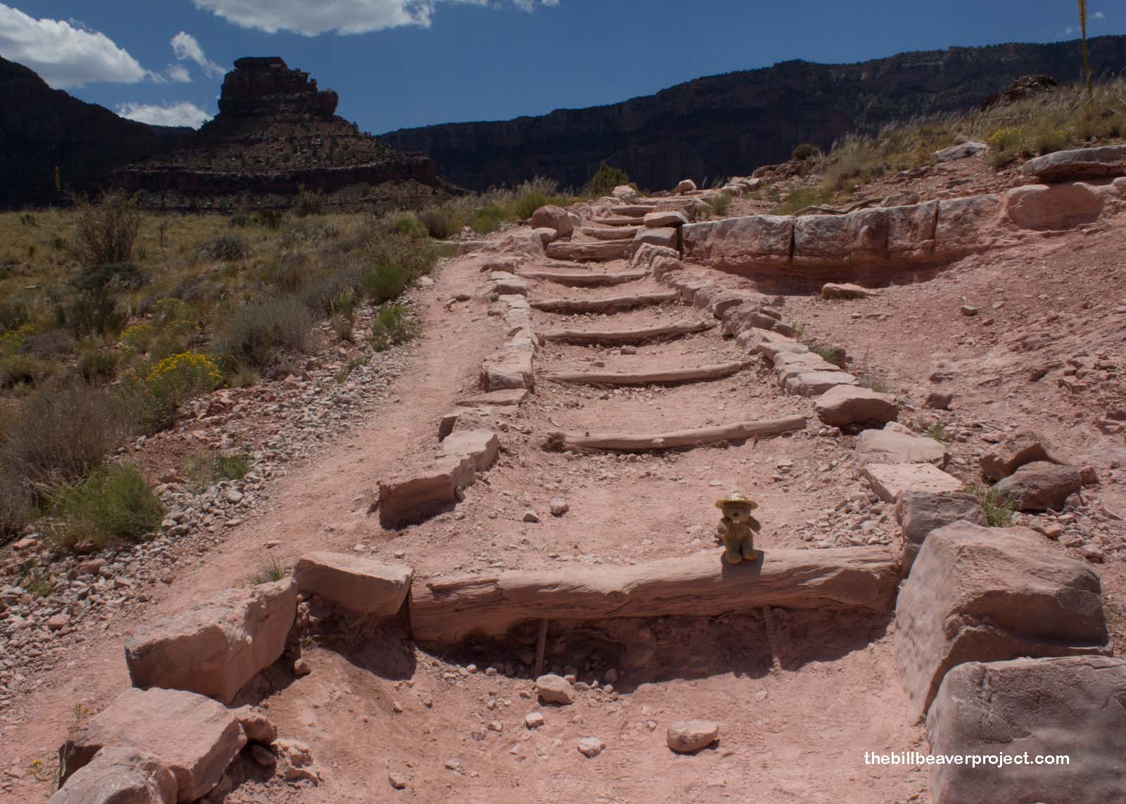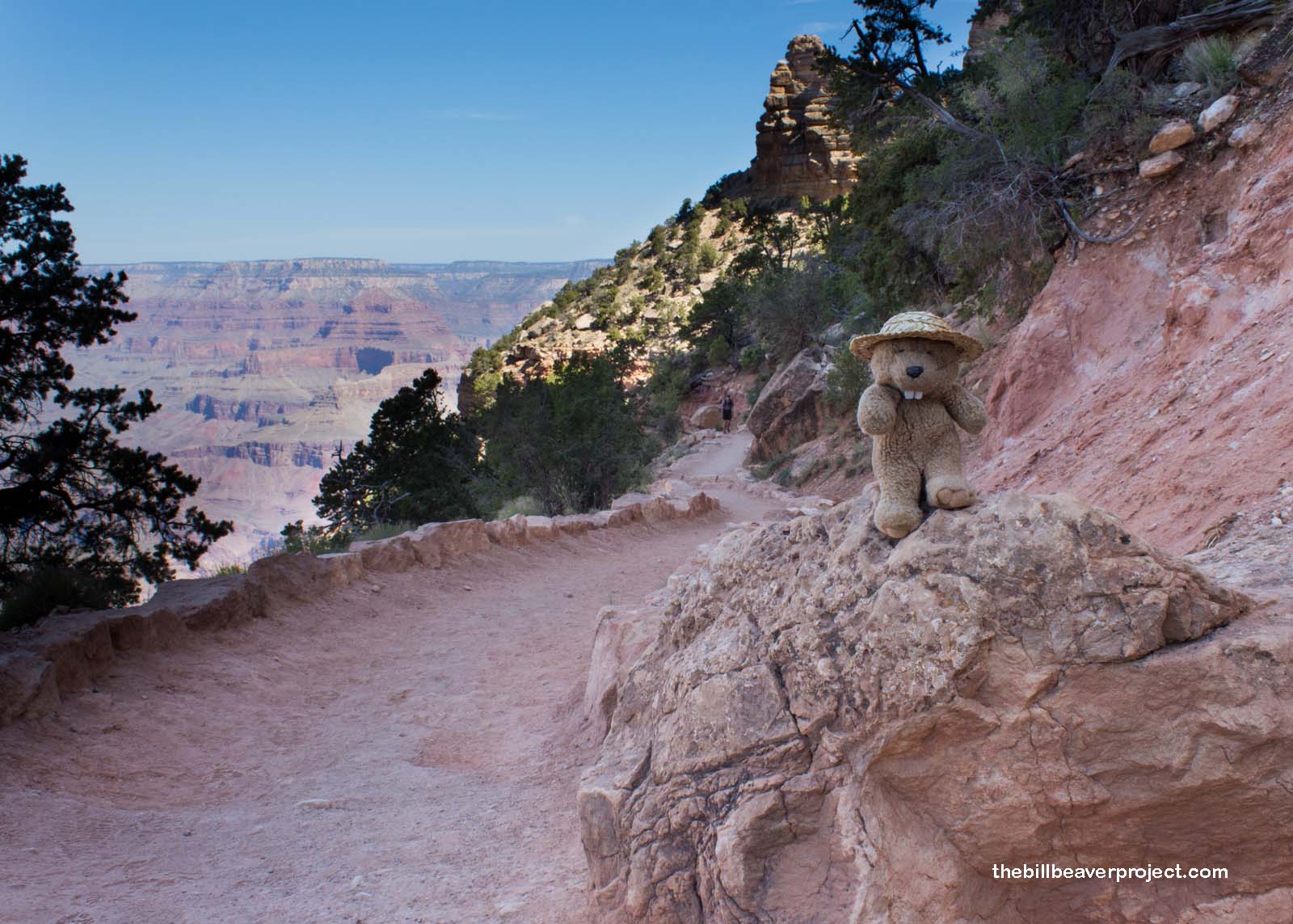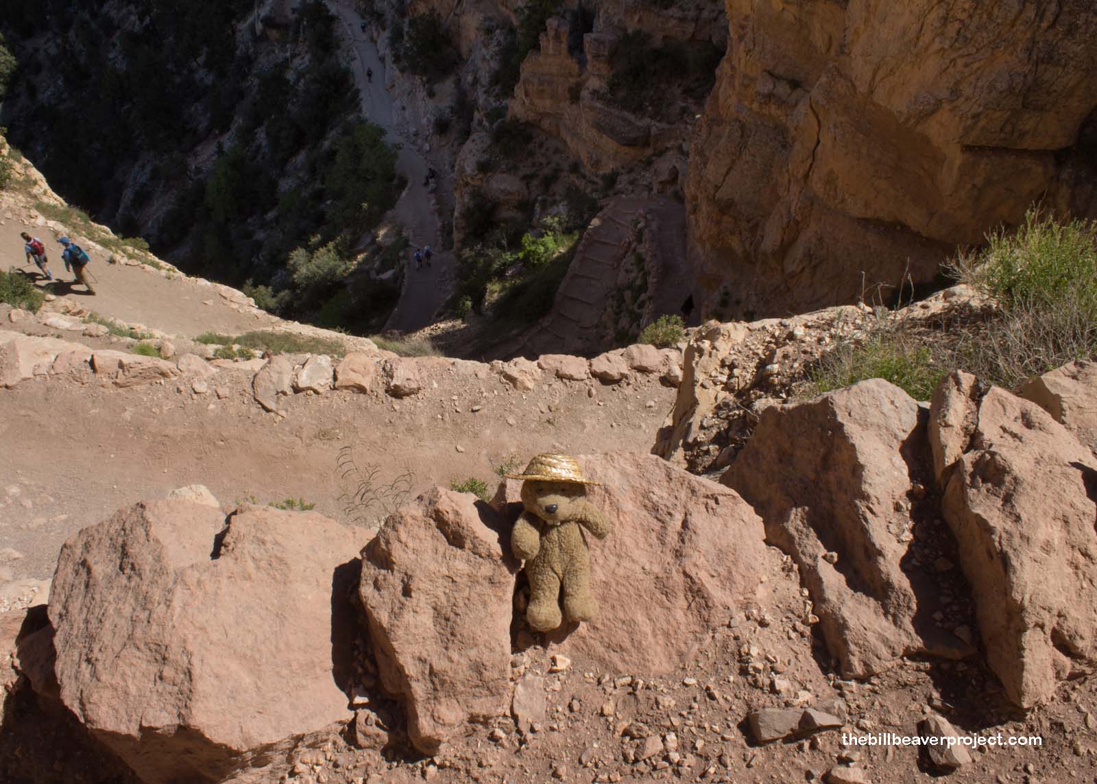Right away, there were all kinds of switchbacks leading down, down, down. I was really glad that they were in the shade at this time of day, but I was worried about how hot it would be once I started my climb back up! That’s the main reason the rangers don’t want you going down and back in one day. Once you get to the bottom, the temperature has jumped almost twenty degrees! Starting an arduous climb in that kind of heat can do a lot of damage!