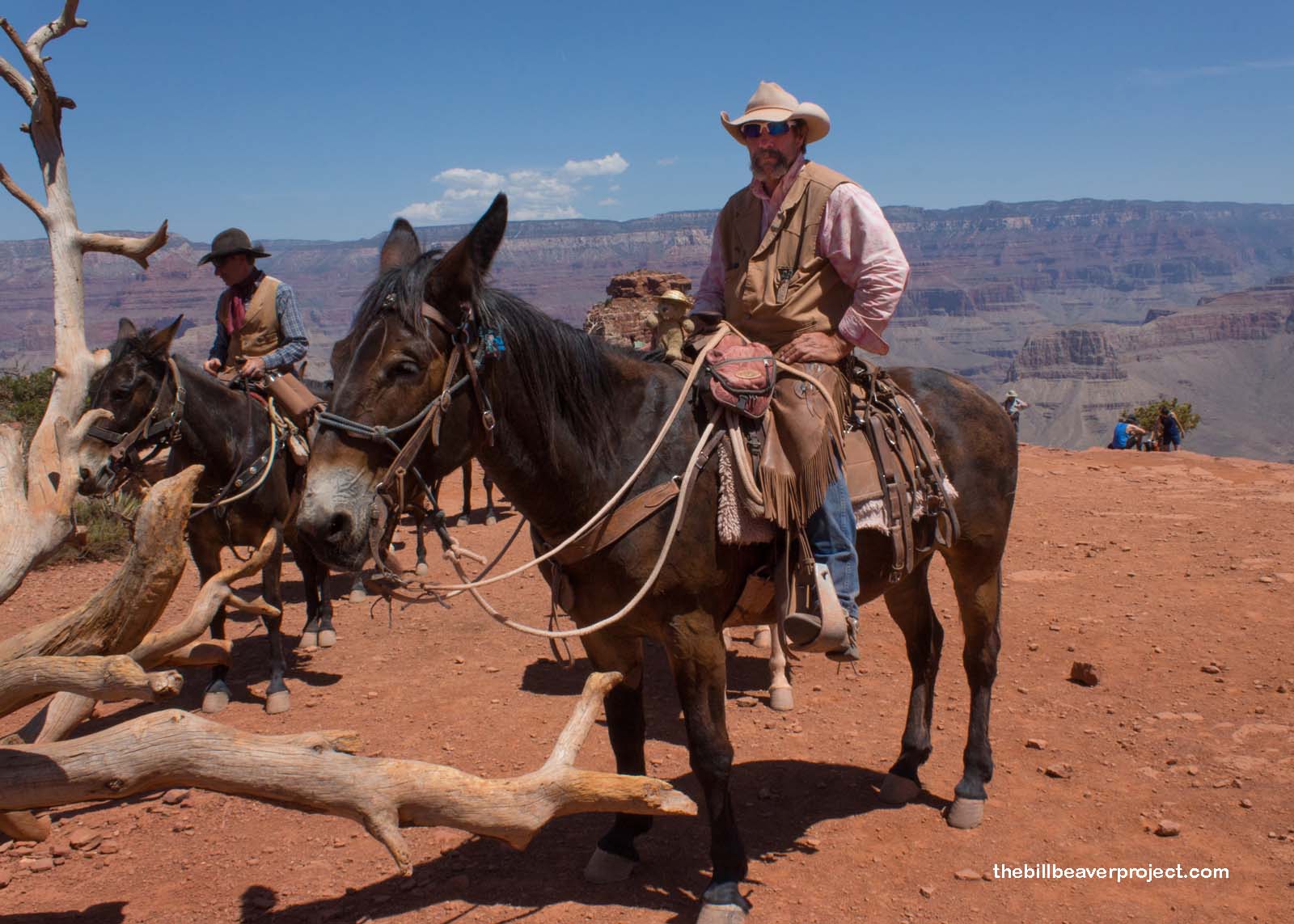 I took my first break at Cedar Ridge, along with a whole bunch of other folks making use of the sparse shade and the only bathroom on the trail! I even met some nice muleteers heading back up the trail! Mules are famously sure-footed, even when transporting a lot of weight, which is why they’ve been the favorite pack animal of the canyon since the late 1800s! These mules were heading back up the way I came, but I didn’t want to cut my trip short just yet.