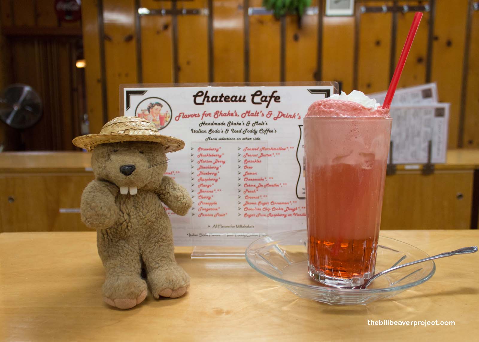 There were ladies in period attire strolling about the old Chateau and enjoying tea, but as lunchtime rolled around, we were looking for something more substantial to ease our disappointment. So, we sat down in the empty Chateau Cafe, where our quirky waiter, Seth, regaled us with stories of the Chateau and gave us some huge Italian sodas, the more genuine kind, he said, because they had ice cream! That definitely helped ease the blow!