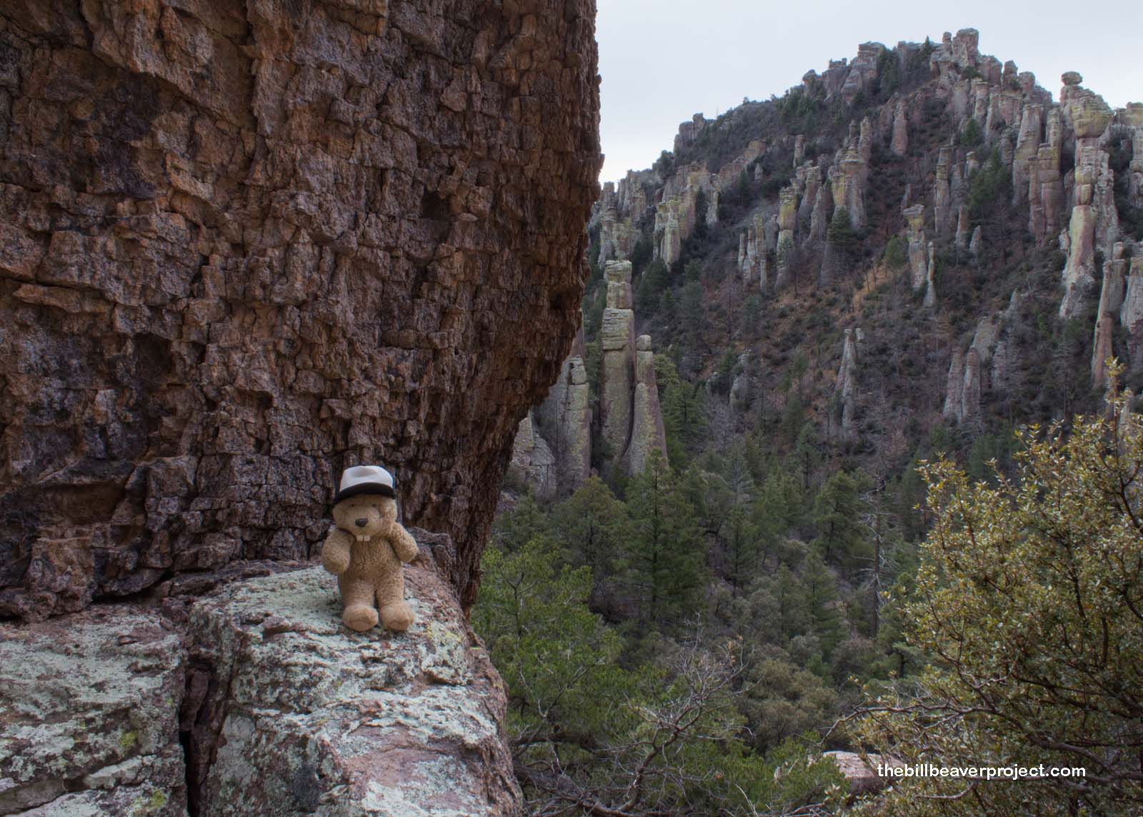 Before long, I caught site of the first of Chiricahua’s otherworldly standing rocks! These huge monoliths formed from a major volcanic eruption about 27 million years ago! The ash and debris from what we call the Turkey Creek Caldera today fell and compacted into a rock called rhyolite. Over time, the elements have eroded that rhyolite into spectacular pinnacles!