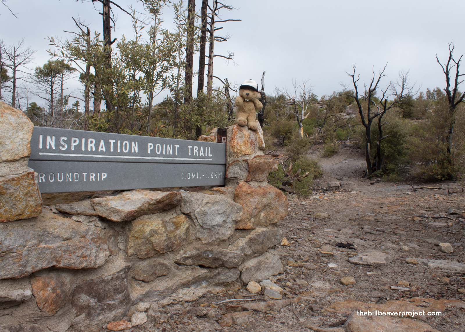 Again, signs redirected me off the Ed Riggs Trail and onto the Mushroom Rock Trail, heading toward a place called Inspiration Point! As I passed into the trees and under the appropriately named Mushroom Rock, I was starting to sweat a fair bit! There was still a good mile of uphill slope ahead!