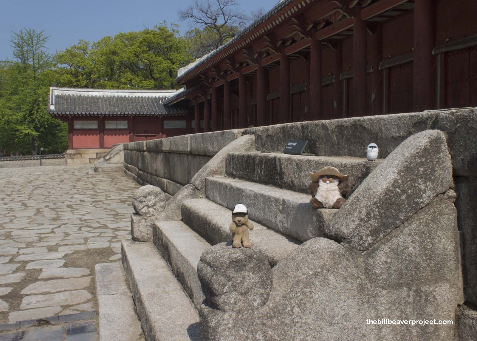 First, we visited the main hall, or Jeongjeon, which houses 49 spirit chambers and tablets, including that of Taejo, founder of the Joseon dynasty, Korea’s last and longest! In case you were wondering, spirit tablets are made of wood and have honorary titles for ancestors and special holes where their spirits can live! They are offered food and wine five times a year to keep them happy in the afterlife!