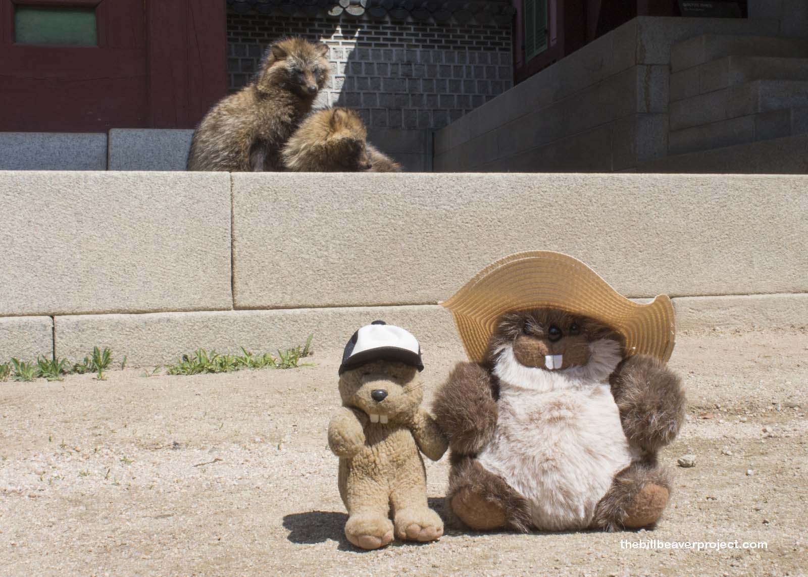 Peeking into a secluded corner of this complex, we discovered two raccoon dogs, or neoguri, enjoying a siesta in the sun! Raccoon dogs have an almost mythical status, especially in Japan, where they are called tanuki! You’ve probably seen Super Mario flying around in a tanuki suit! Unfortunately, other folks like wearing tanuki suits so much that their fur is often sold as “fake fur” to fool animal lovers! Mom and I decided it was best to leave these two to their nap!