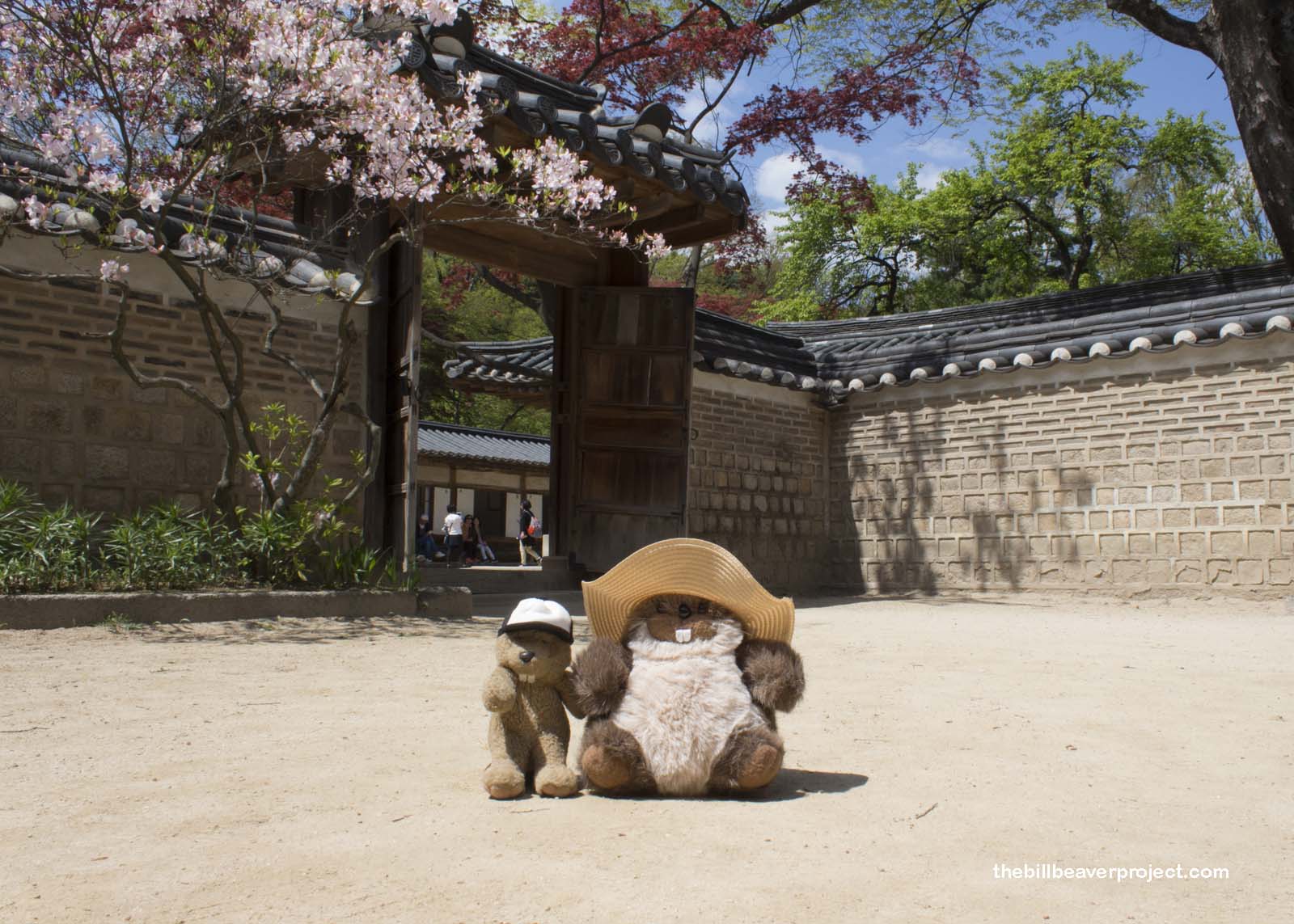 Behind this palace complex, however, is the most spectacular garden of the Five Grand Palaces of Korea! Called the Secret Garden, or Huwon, these blossoming grounds were a place where kings and queens could relax and try their hand at growing grain, producing silk, or just having archery contests!