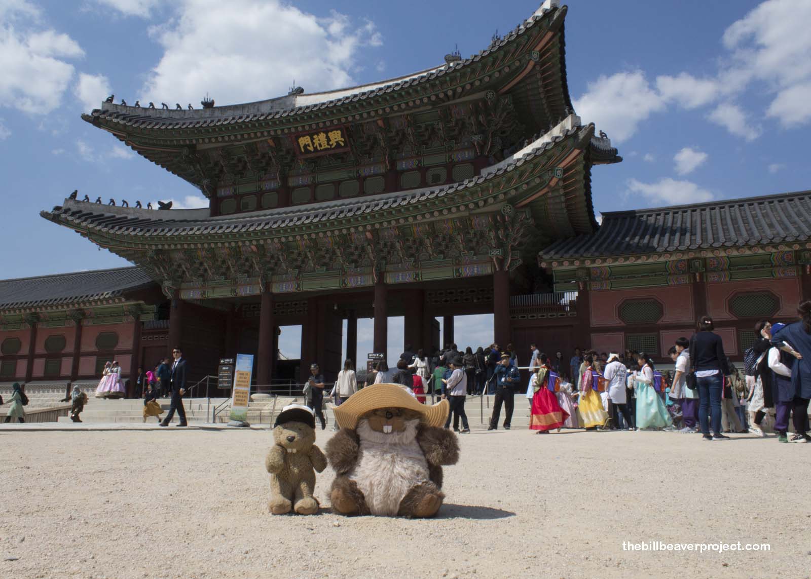 We arrived just in time for the changing of the guard ceremony at the Gwanghwamun Gate! When the Joseon king resided here at Gyeongbukgung, sentries at the gates were assigned day and night shifts, and when the shifts changed, the guards would swap out with great pomp and circumstance. After careful research, the ritual was brought back in 1996 and now happens Wednesday through Monday at 10:00 AM and 2:00 PM!