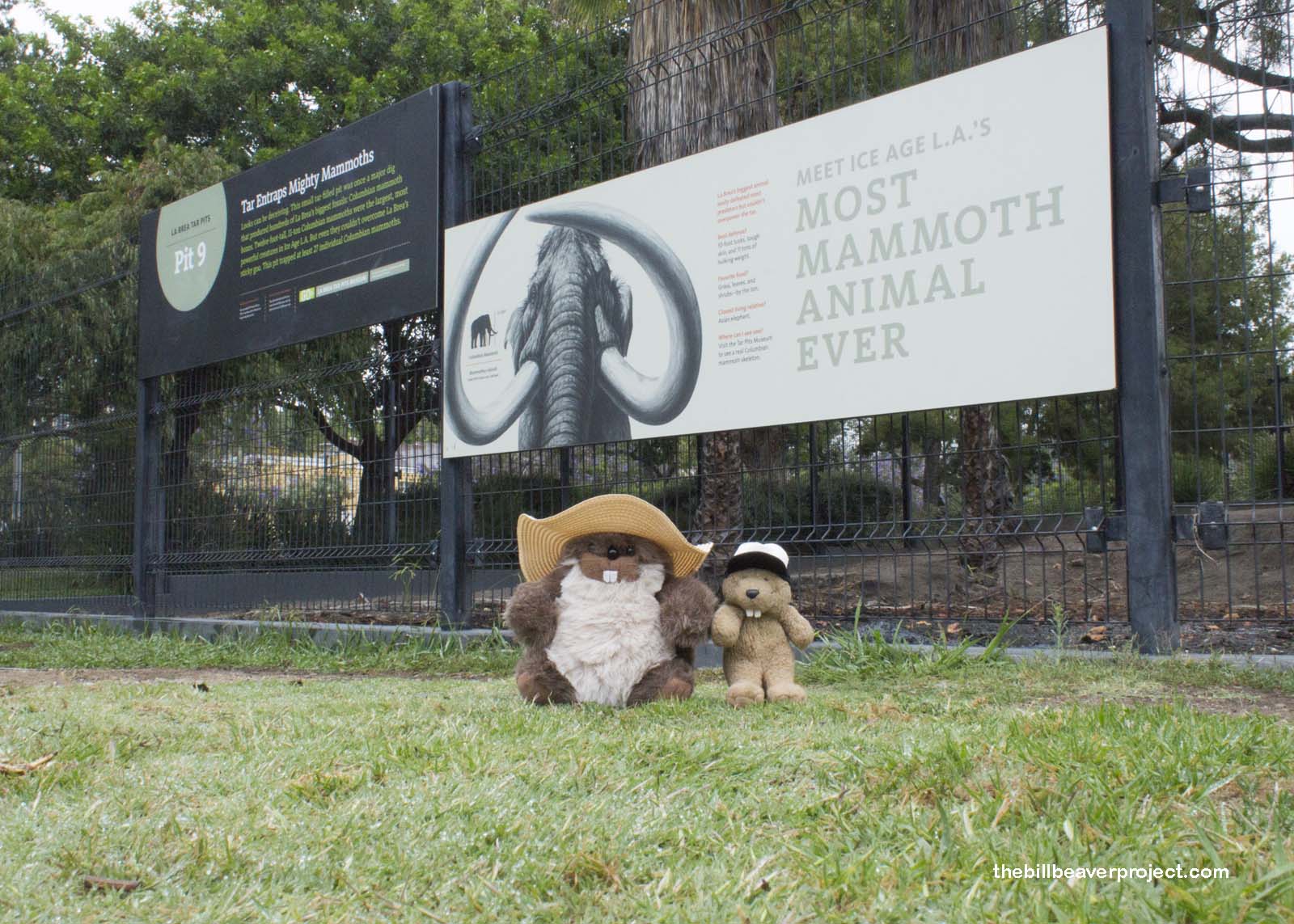Mostly! The asphalt is still bubbling up under the surface, and Mom and I came very close to blundering into a pool of our own! There are traffic cones set up on most of these spots to keep visitors from becoming fossils, but some joker had moved one!