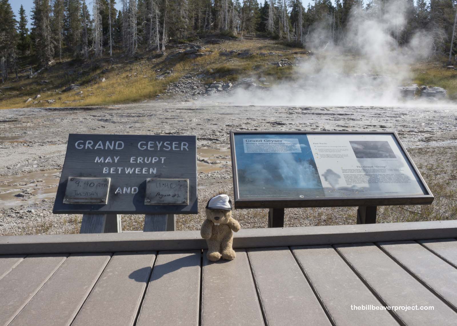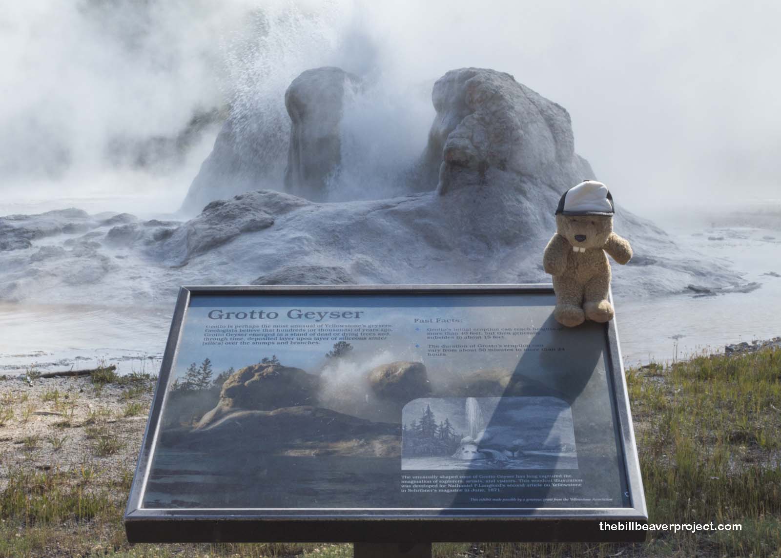 At the side of Grotto Geyser, I met a traveler named Pippin and her friend, Thing 1. Normally Thing 1 travels with his friend, Thing 2, but Thing 2 apparently decided to sleep in today. No matter, it was neat meeting another tiny traveler enjoying the spectacular sights of the Upper Geyser Basin!