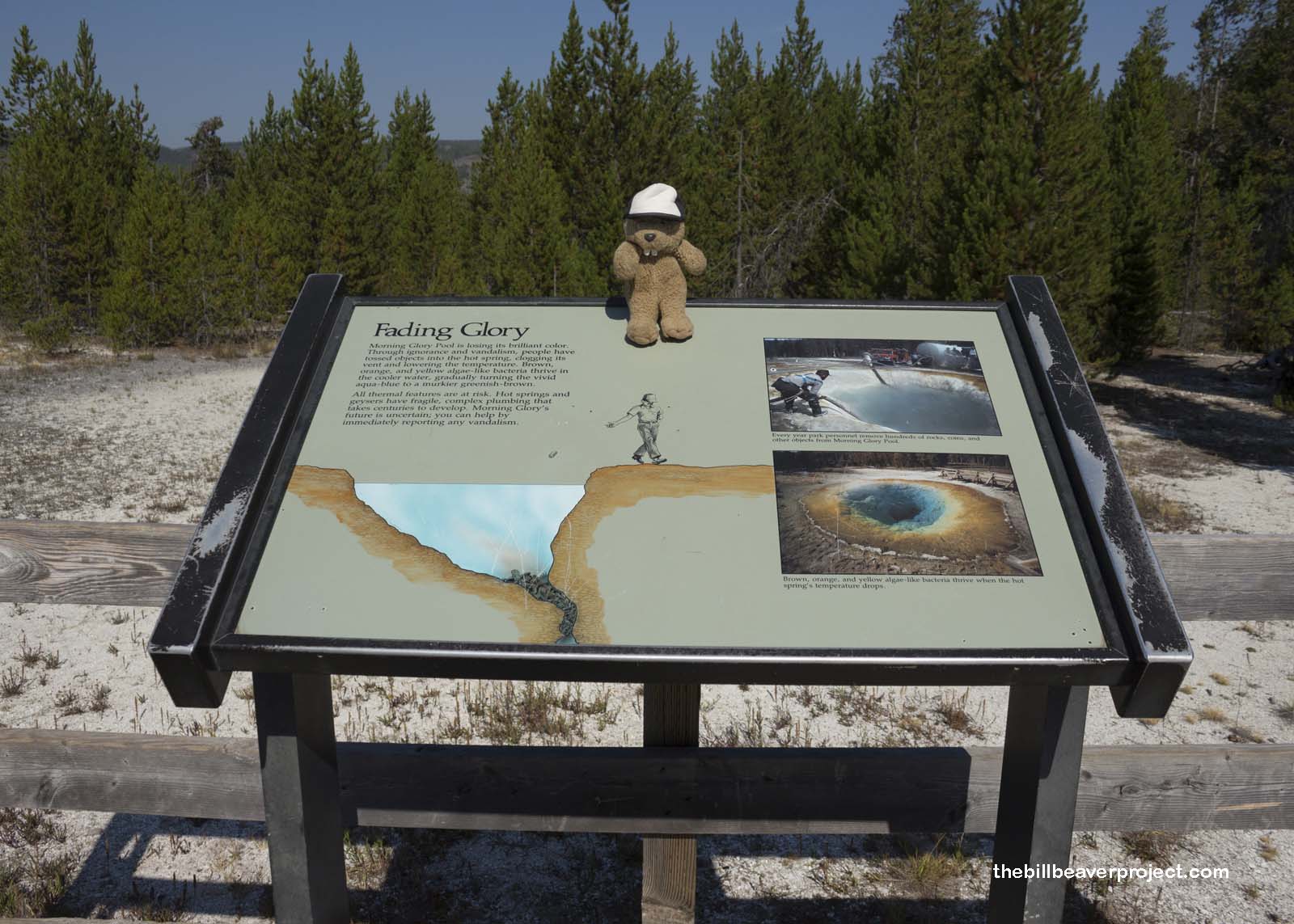 Like Blue Star Spring, Morning Glory Pool has been used as a garbage can by careless tourists for years! By throwing countless rocks, sticks, and bits of trash into the spring, people have clogged the bottom and cut off the hot water that had been warming the pool’s blue and green bacteria! Now that the water is cooling, only green, yellow, and brown bacteria can survive! It’s a big shame, though the pool is still holding on to some of its beauty. Don’t throw rocks in hot springs!