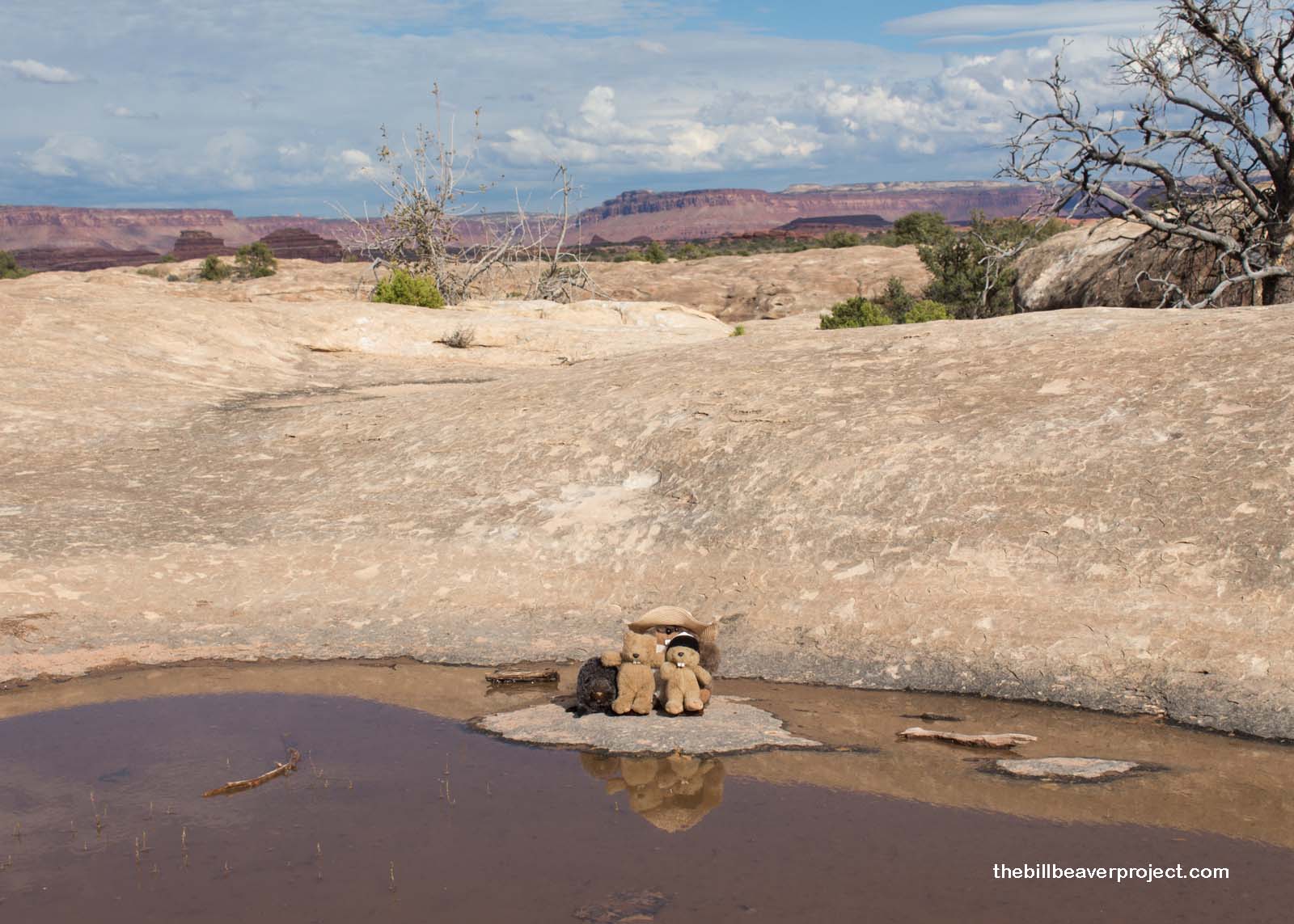 But why is it called Pothole Point and not Pancake Point, you ask? The rain pounding on the sandstone has worn pits called potholes into the rock, and when those pits fill with water, desert magic happens! Ancient, tiny creatures, like fairy shrimp and tadpole shrimp, which may have been dormant for 50 years, come back to life in a race to live their lives before the water dries up again! We sat and watched them for what felt like hours as they frantically foraged the way they have for millions of years!