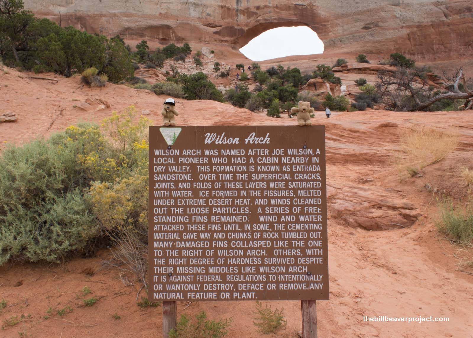 We took our time heading south from there, knowing that Woodchuck is a late sleeper anyway, and we stopped by Wilson Arch, one of the most accessible stone arches in this area. Named for local pioneer, Joe Wilson, it was formed by years of freezing, thawing, and sandblasting!