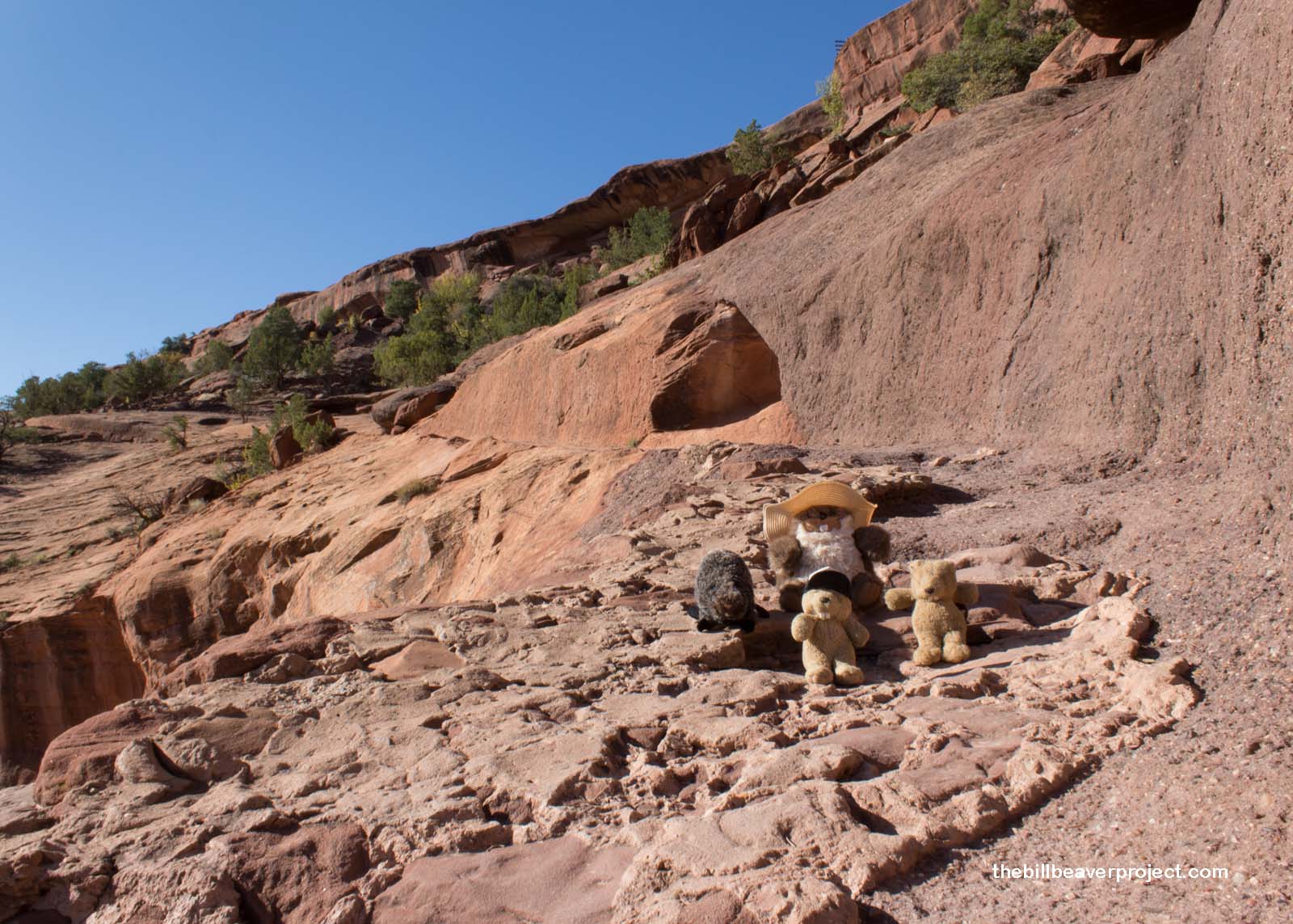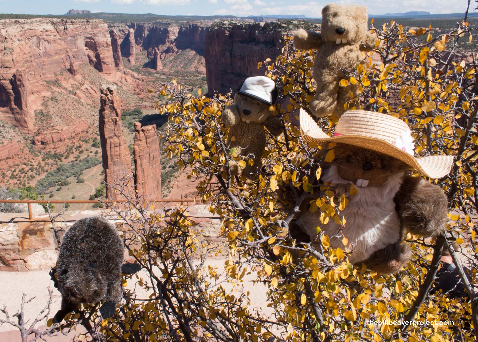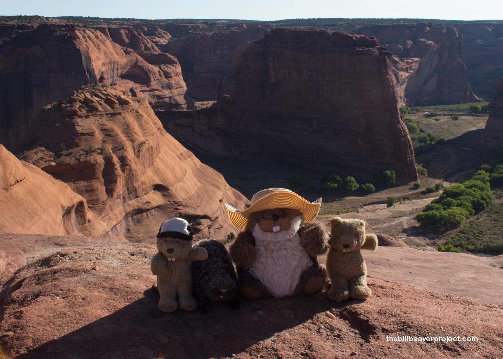 Today, though, as we descended into the canyon, we passed several Navajo craftsfolk hiking up and down the trail and exchanged pleasantries (the Navajo word for “beaver” is chaá). Thanks to a change of thinking, over forty Navajo families reside in the canyon! We could see at least one of their homes with crops and turkeys as we wove our way down the switchbacks…