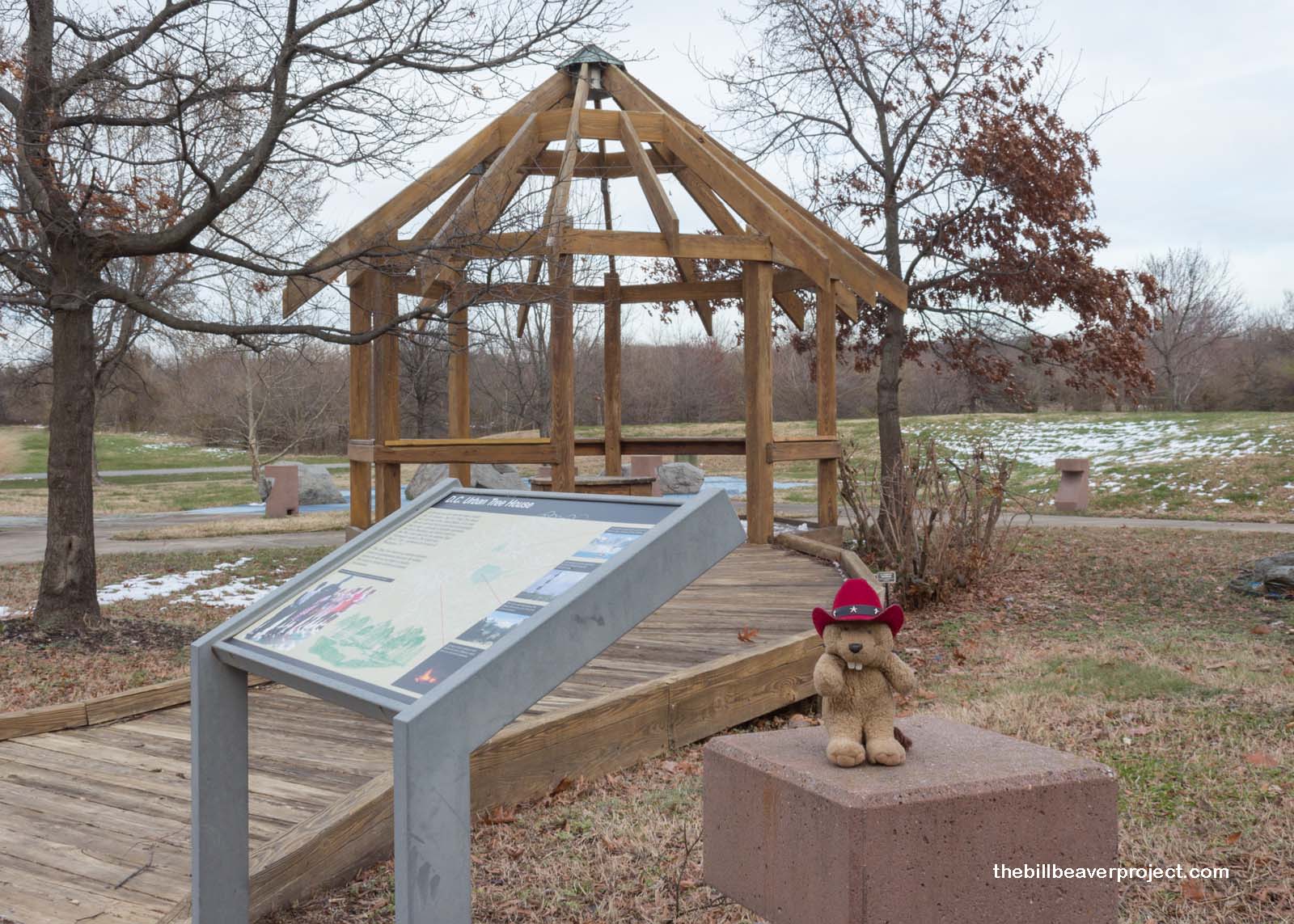 I needed to warm up, so I sought refuge at the nearby Urban Tree House. Only then did I discover that the Urban Tree House wasn’t really a tree house at all! It’s the name of a program that teaches kids about the environment and conservation, which takes place here at a gazebo and a map of the continental United States! I figured they must have their meetings on much warmer days than these.