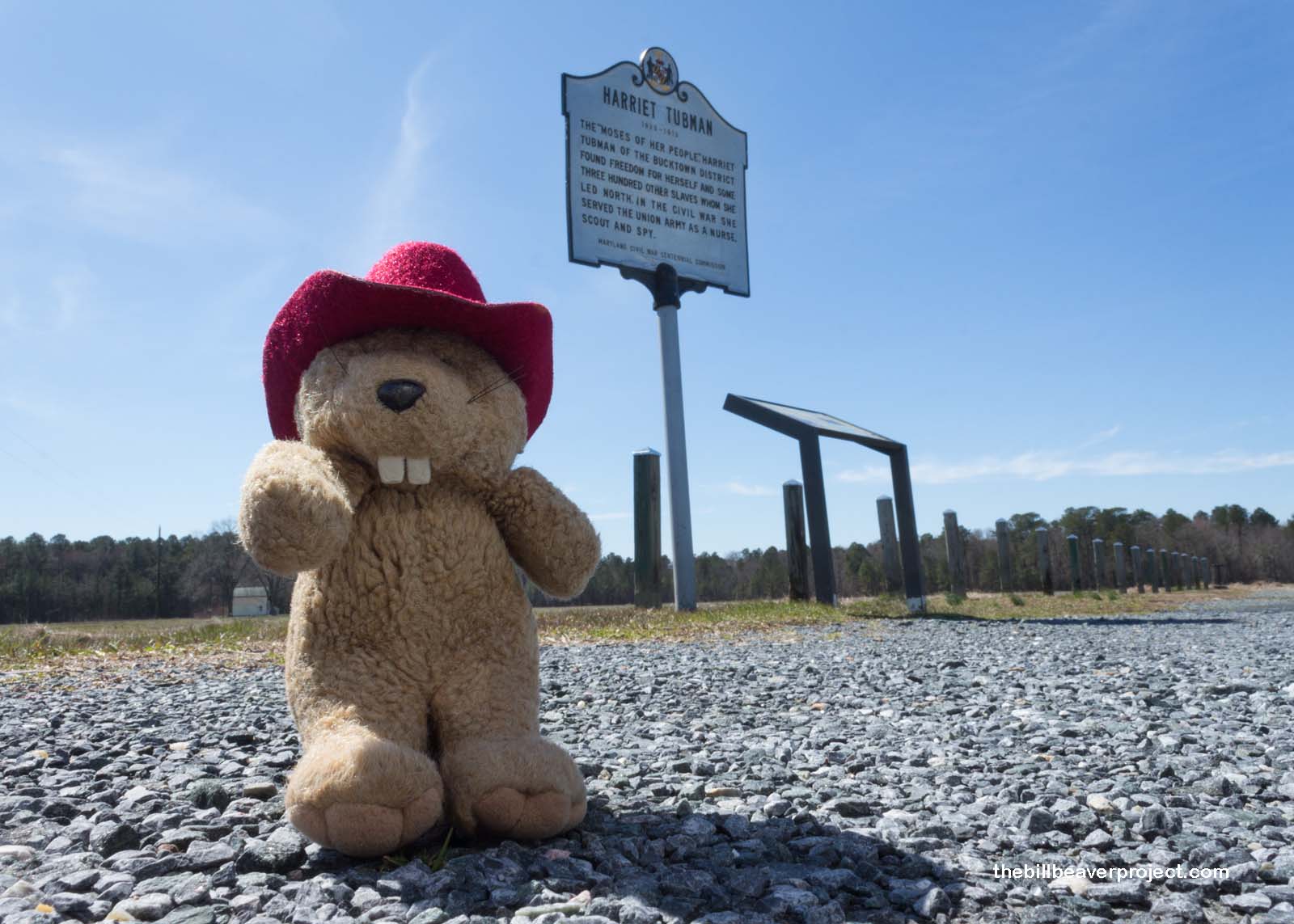 Down the road from the visitor center, a single plaque marks the site of the Brodess Farm, where Ms. Tubman spent many of her early years, until she was separated from her family at the age of six to be put to work setting muskrat traps!
